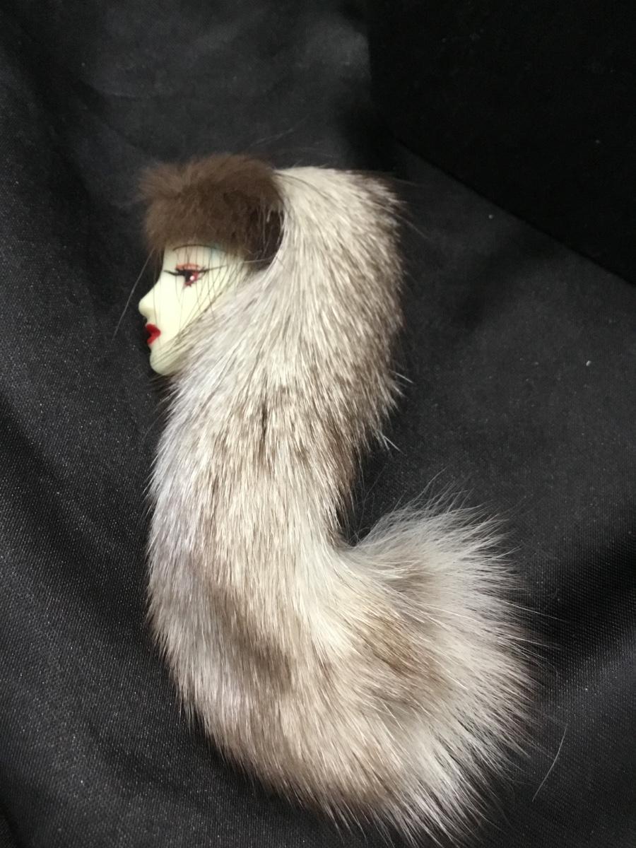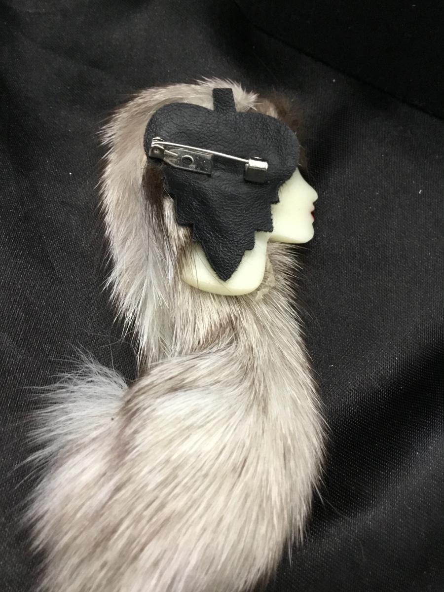 Vintage lady head with furry hat pin