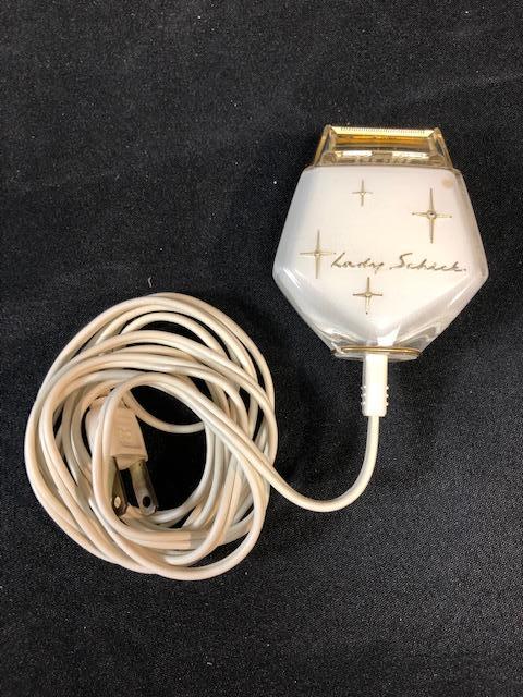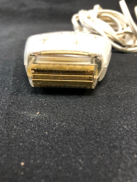 vintage Lady Schick electric razor. White with gold details. In nice condition. Untested.