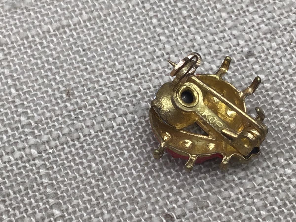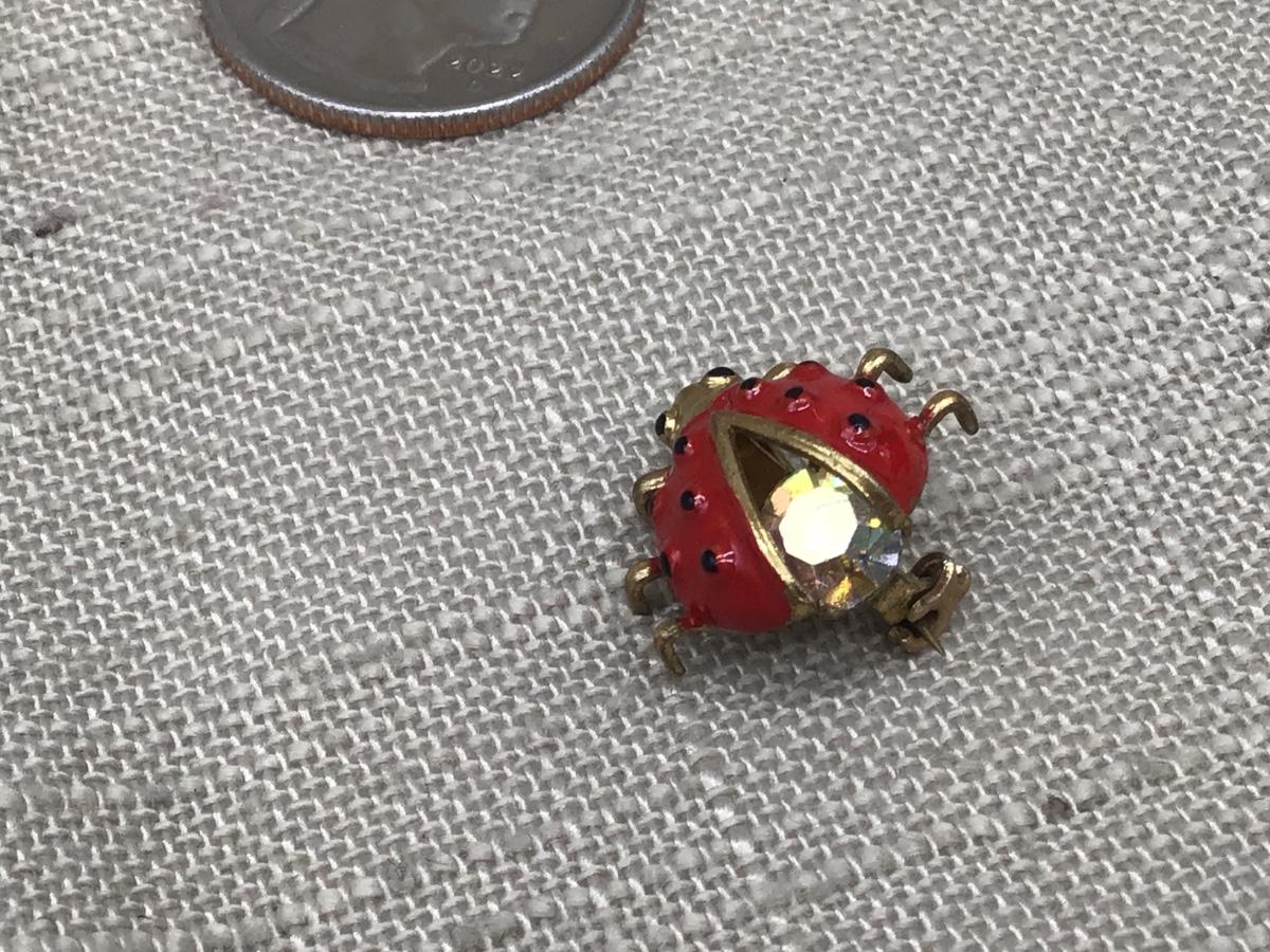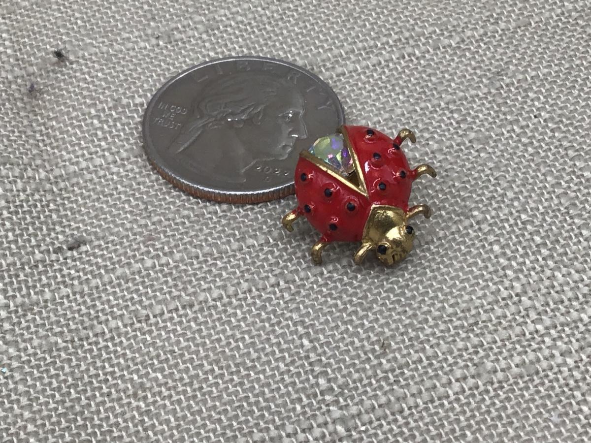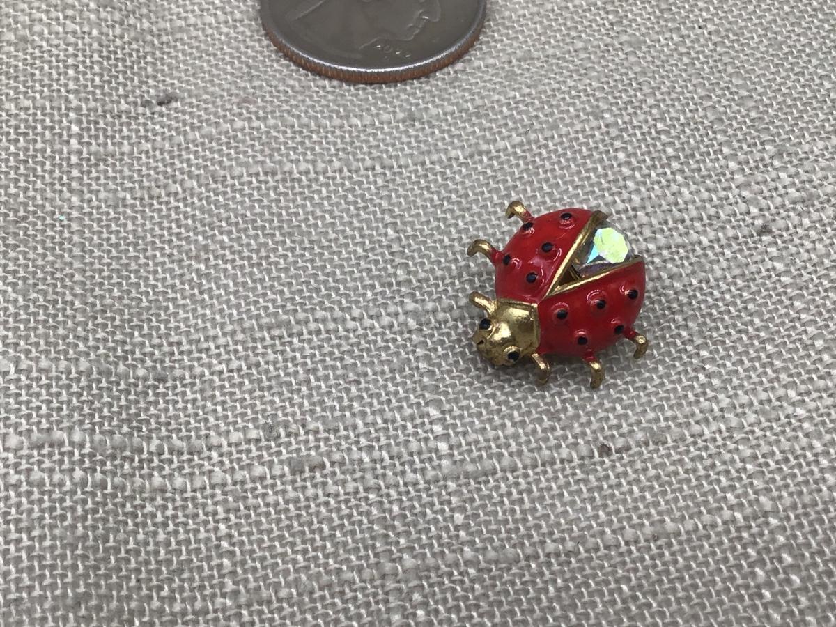 Vintage Ladybug Brooch Rhinestone Red and Black Enamel Gold Tone Insect Pin