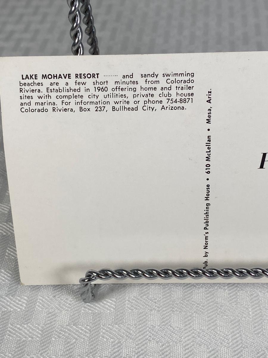 Vintage Lake Mohave Resort "Arizona's Colorado Riviera" post card, unused. Lake Mohave Resort is more commonly known as Katherine's Landing today. Actual postcard date unknown, looks 1960s maybe 1970s.