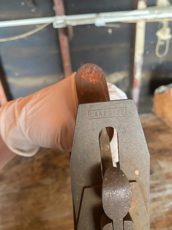 Vintage Lakeside wood hand planer tool. Made in the USA. Did not find any other marks on it. In good used condition.