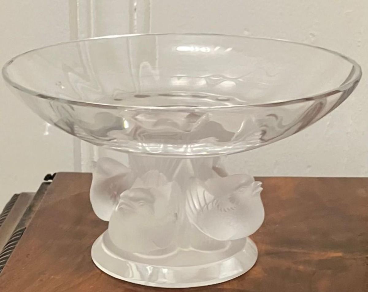 Vintage Lalique Crystal Bowl Nogent Sparrow Birds