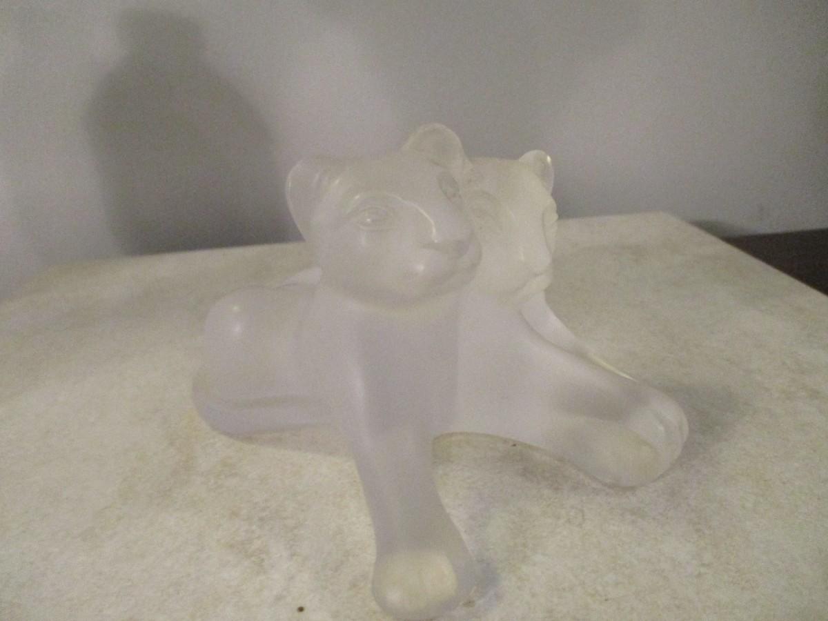 Vintage Lalique Frosted Glass Lion Couple Signed