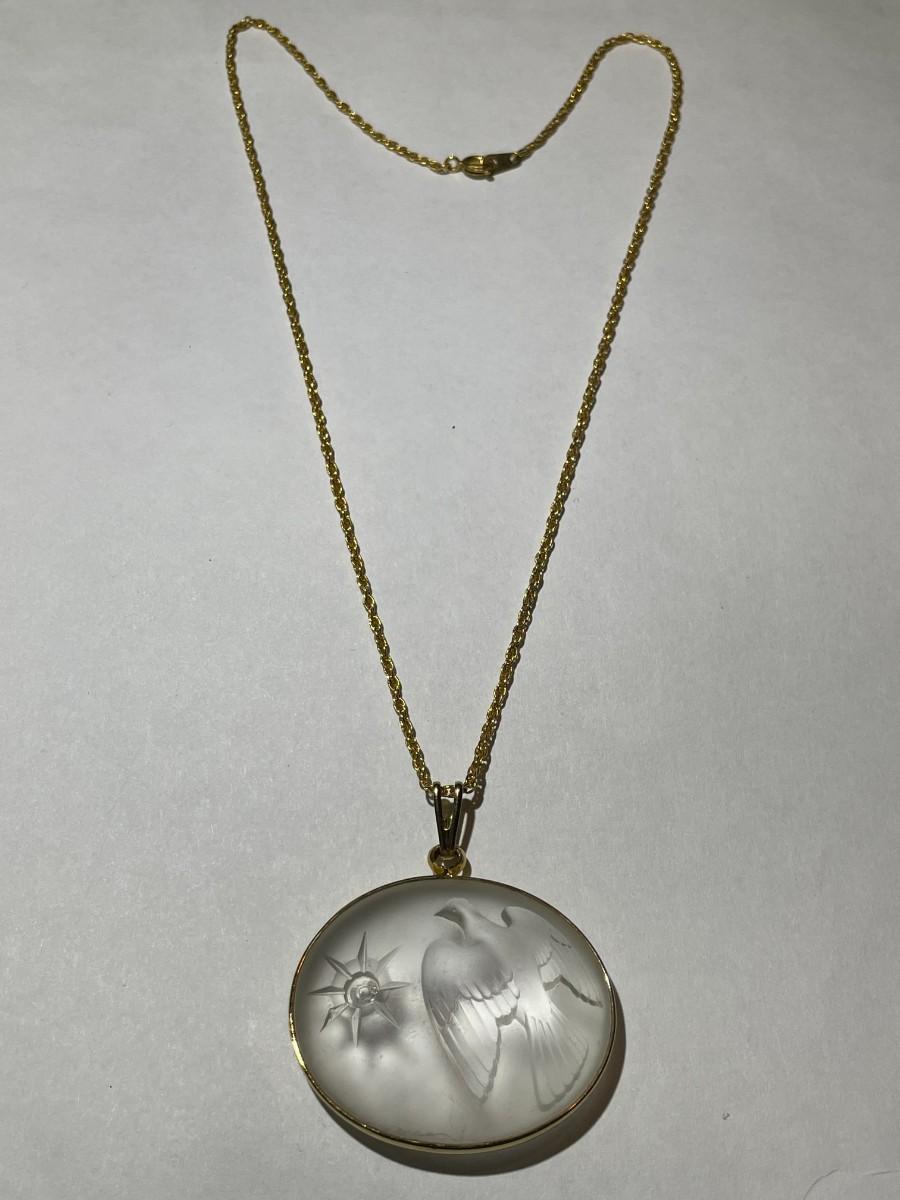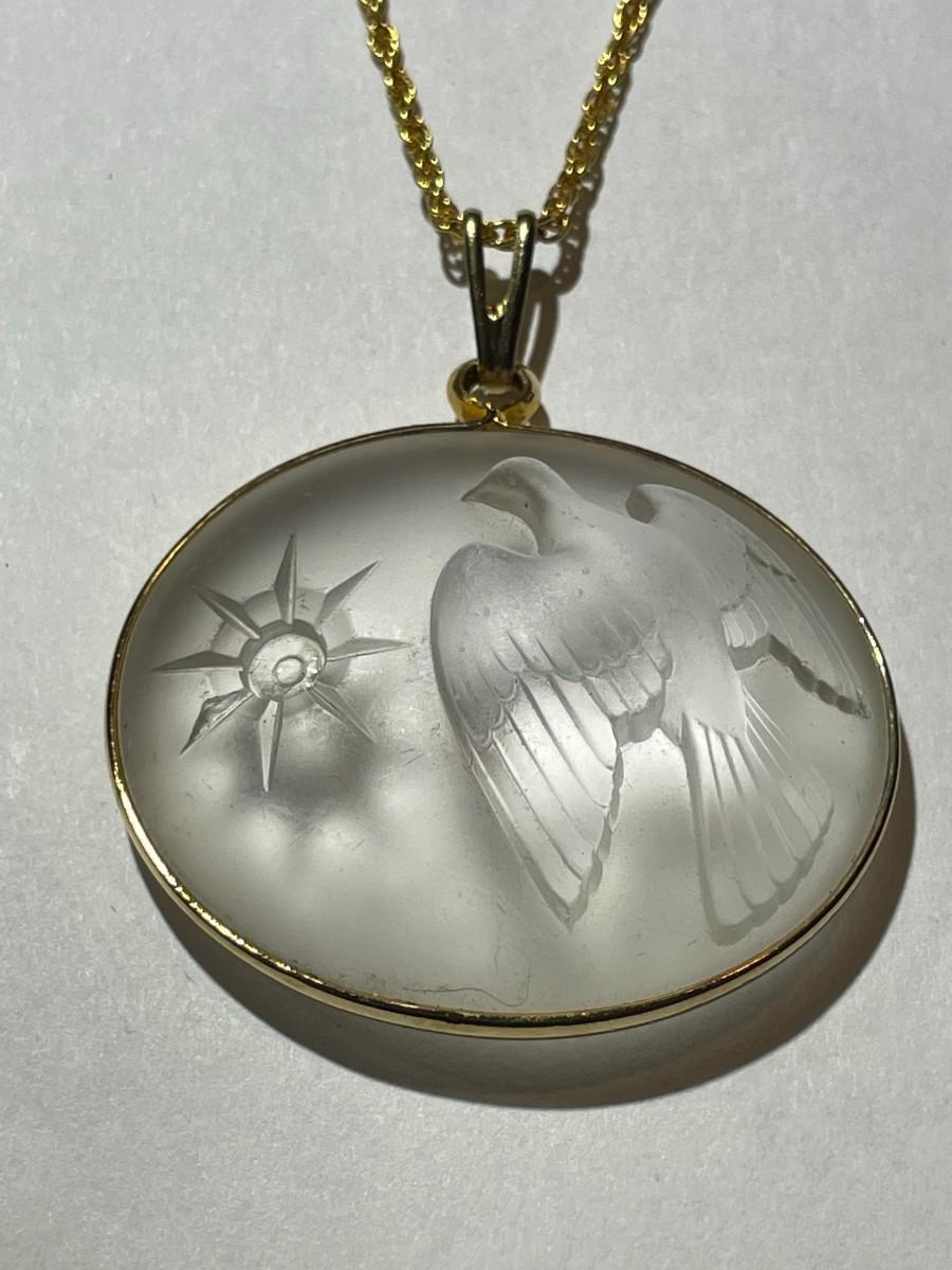 Vintage Lalique Nina Ricci Frosted Crystal Dove Pendant on a Fashion 18" Necklace in Good Preowned Condition. $5 Domestic Shipping.