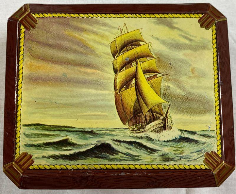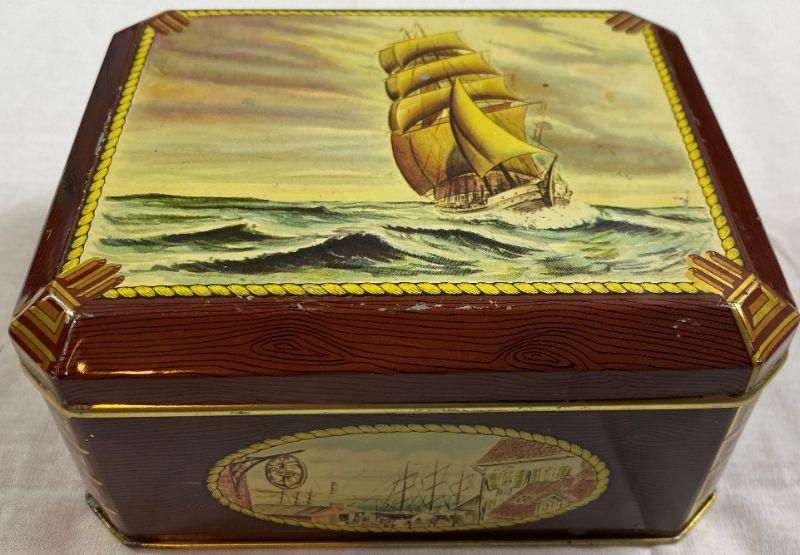 VINTAGE LAMBERTZ TIN MADE WEST GERMANY EMPTY COOKIE CHOCOLATE HINGED CONTAINER