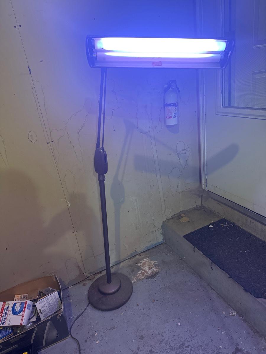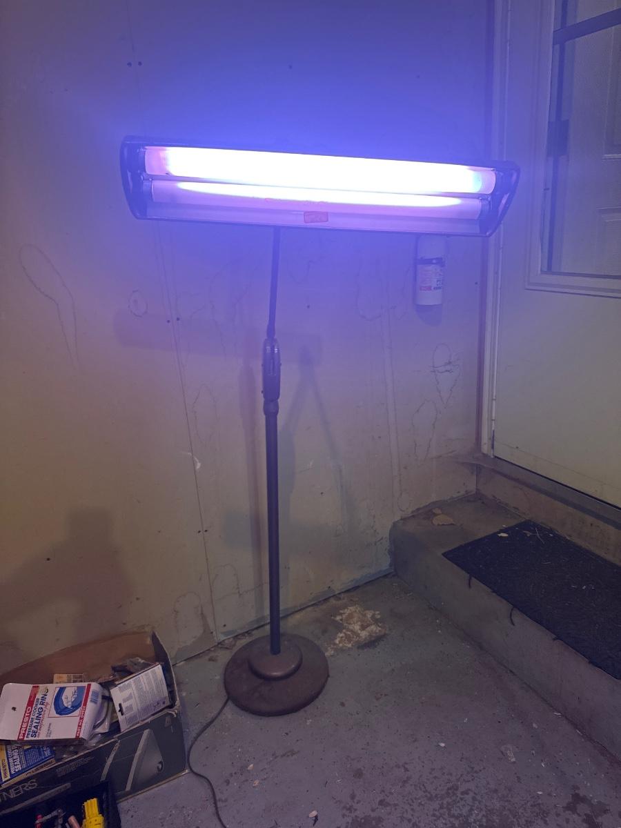 Needs a new Fluorescent bulb Max height on lamp is about 5 feet.