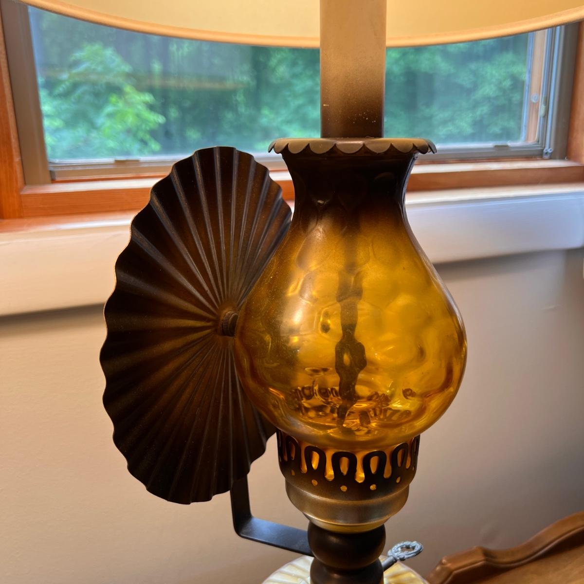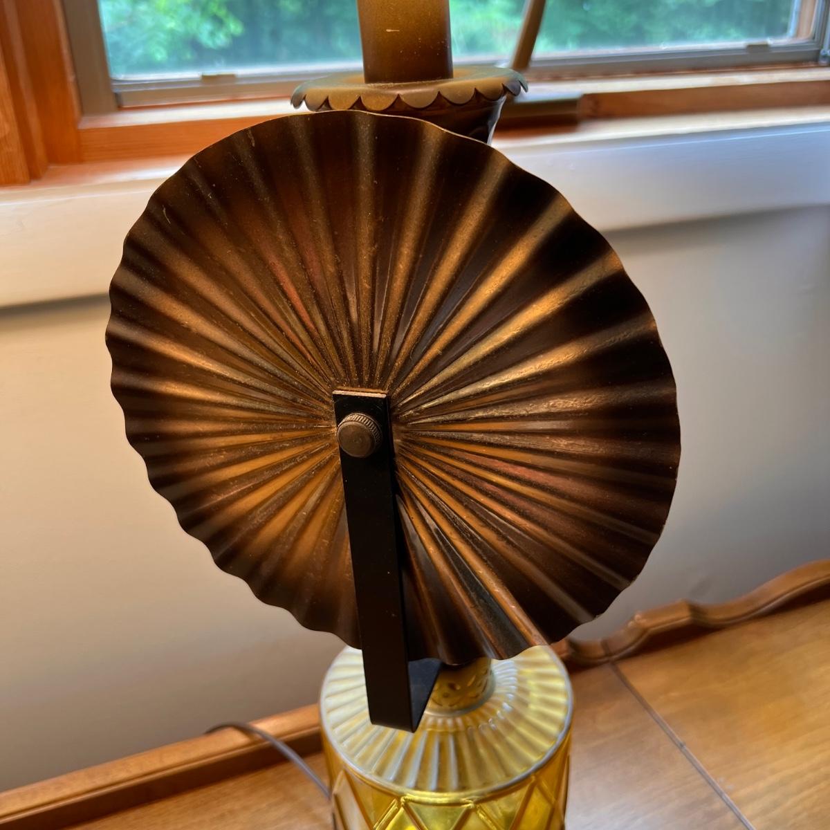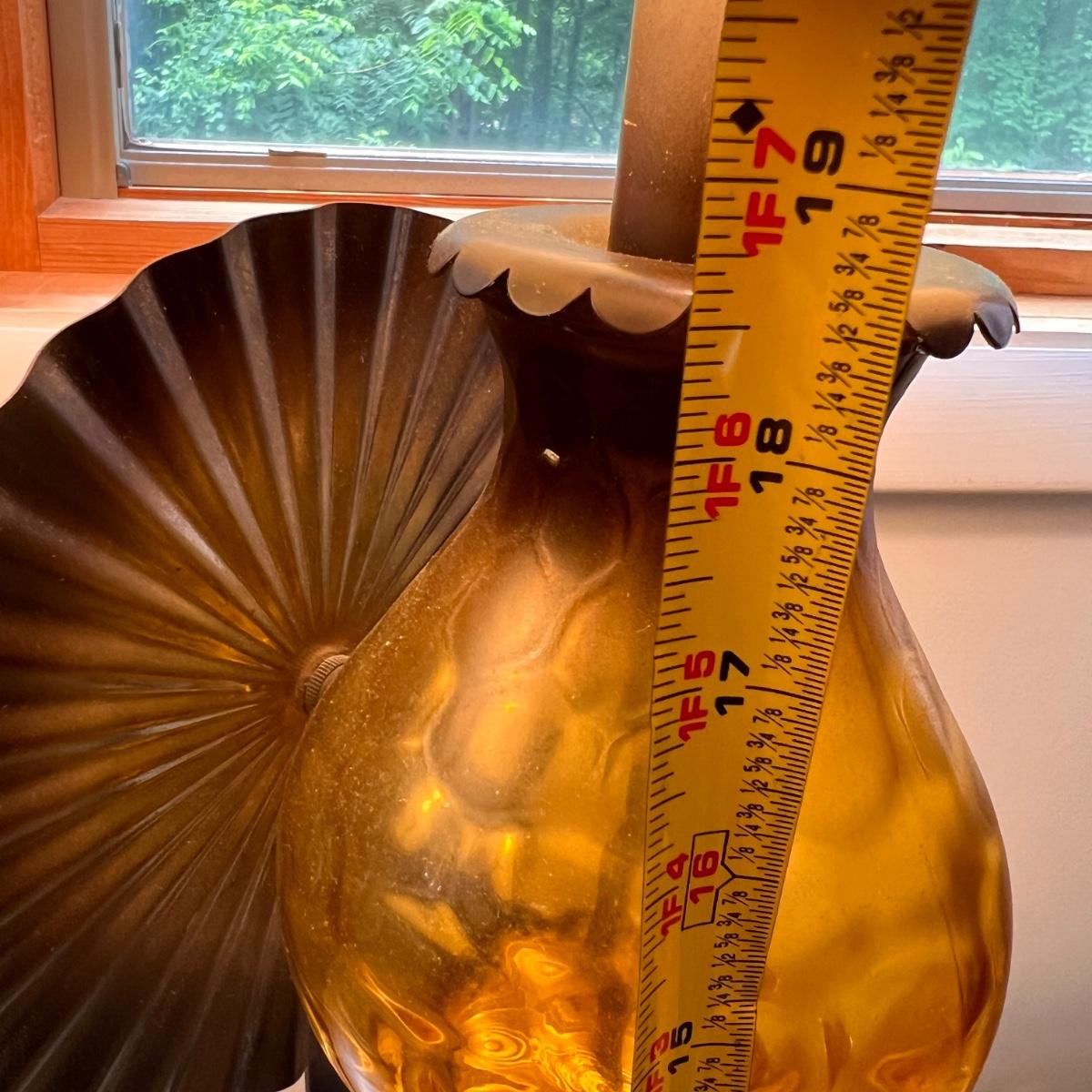 Both are working. 3 way light - base, top or base and top. Great condition. Yellow amber glass and metal.