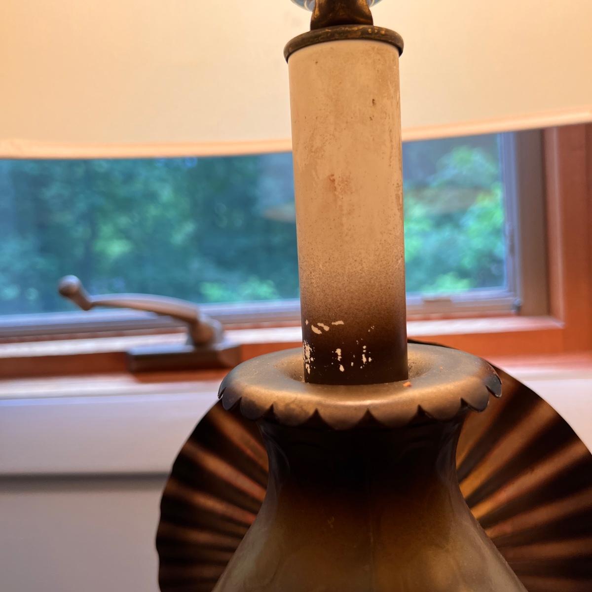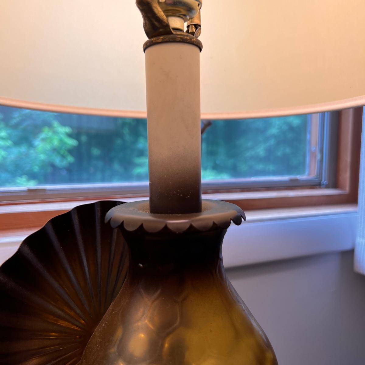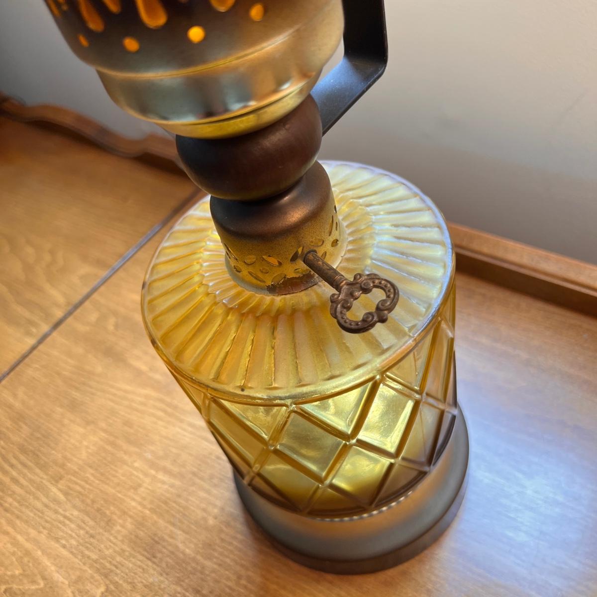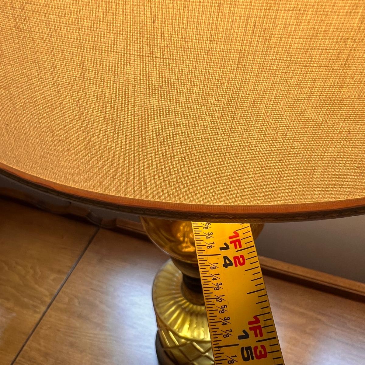 Both are working. 3 way light - base, top or base and top. Great condition. Yellow amber glass and metal.