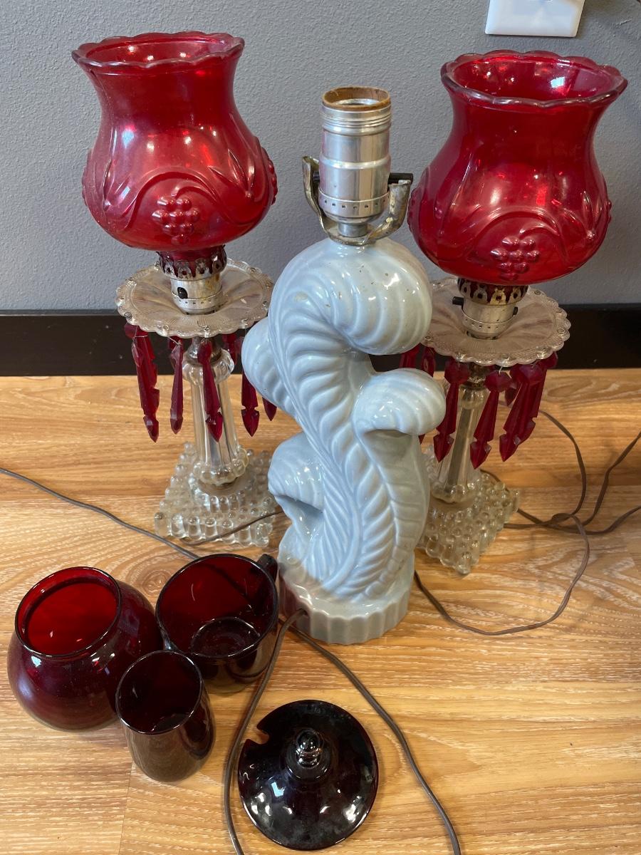 Vintage lamps & red glass