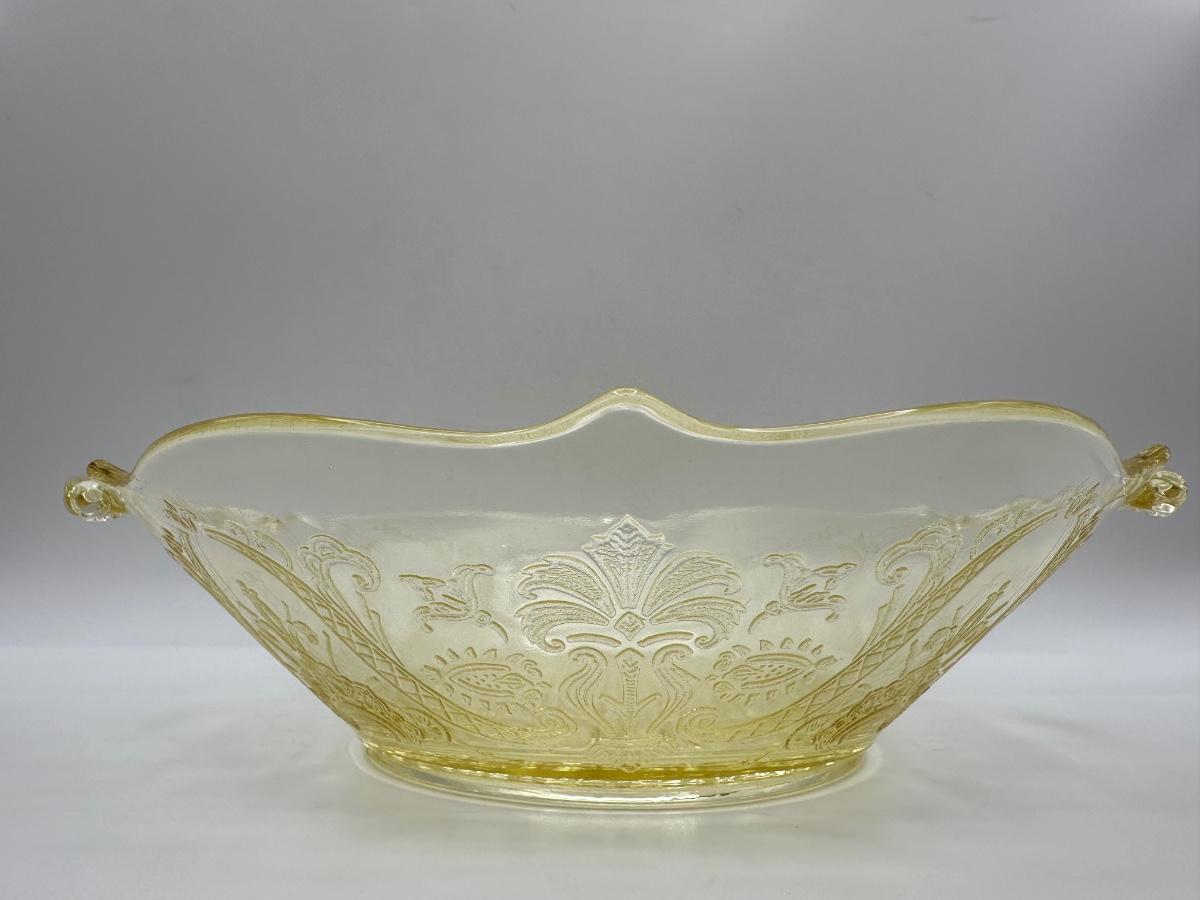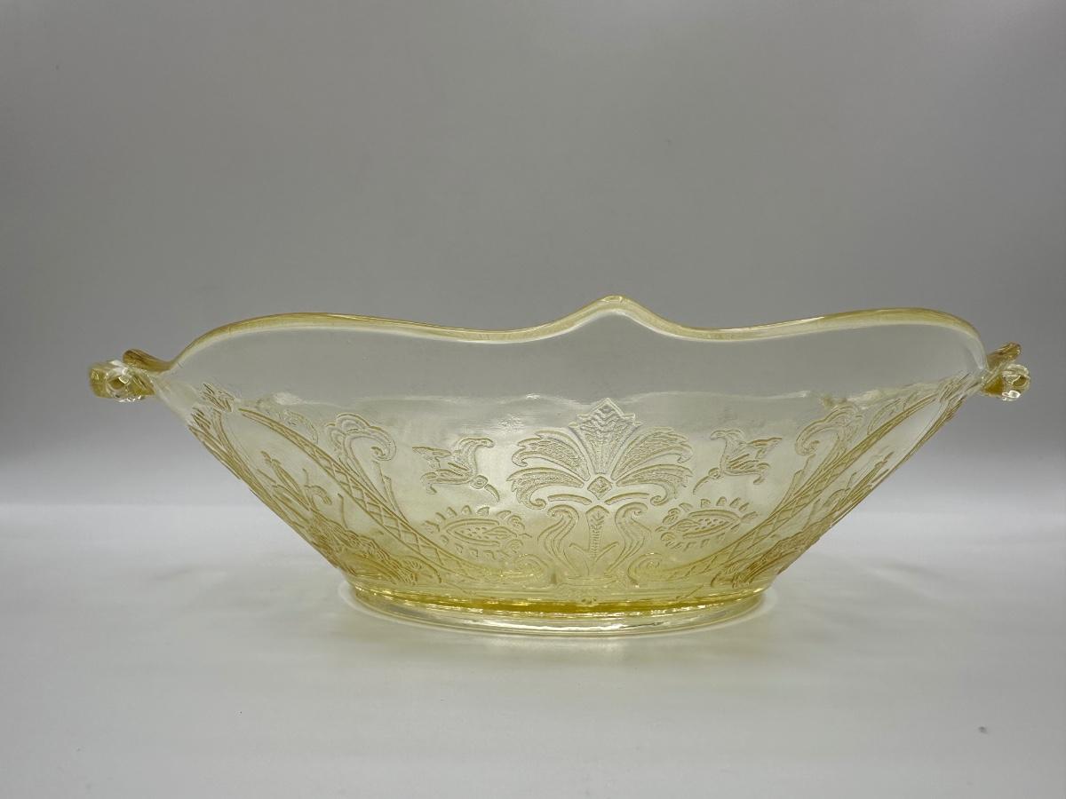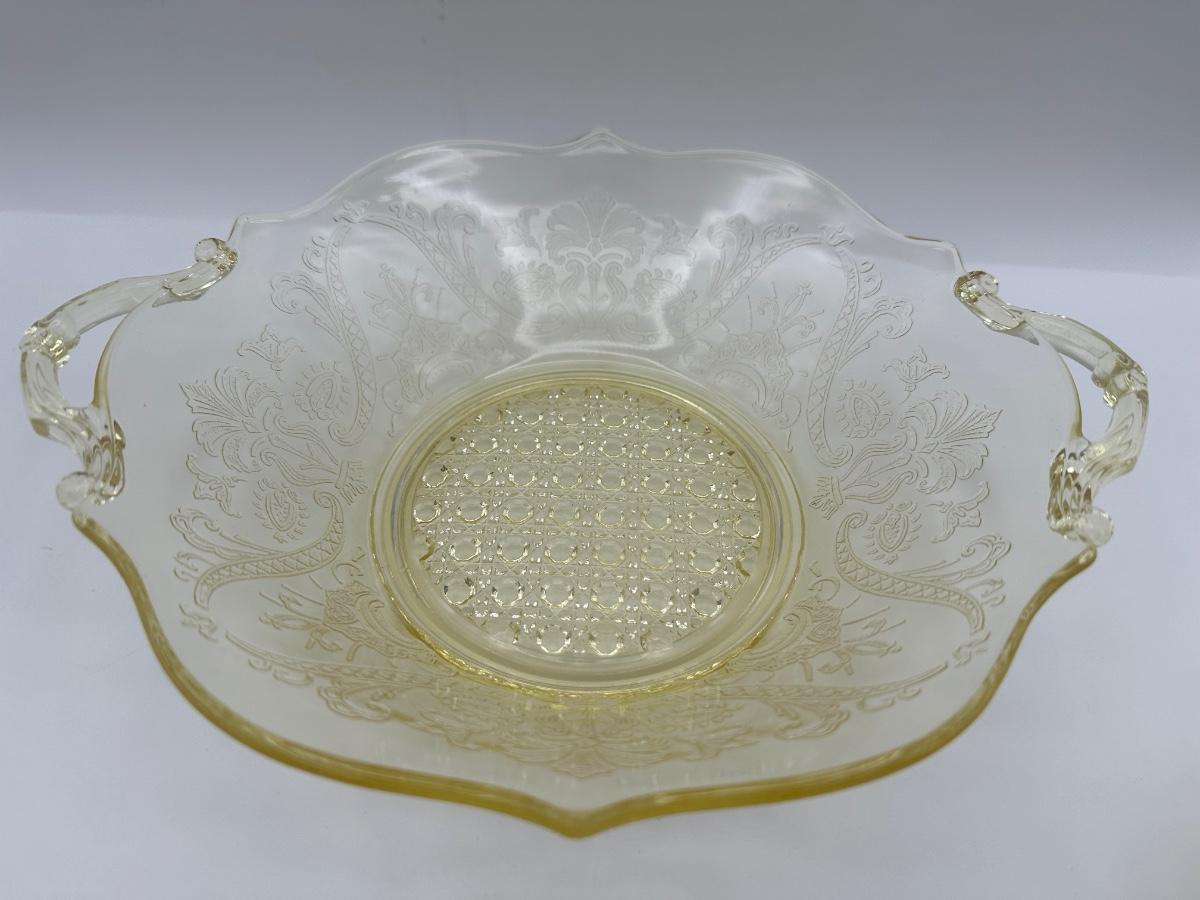 Vintage Lancaster Glass Company - Landrum Topaz Bowl with Handles (2)