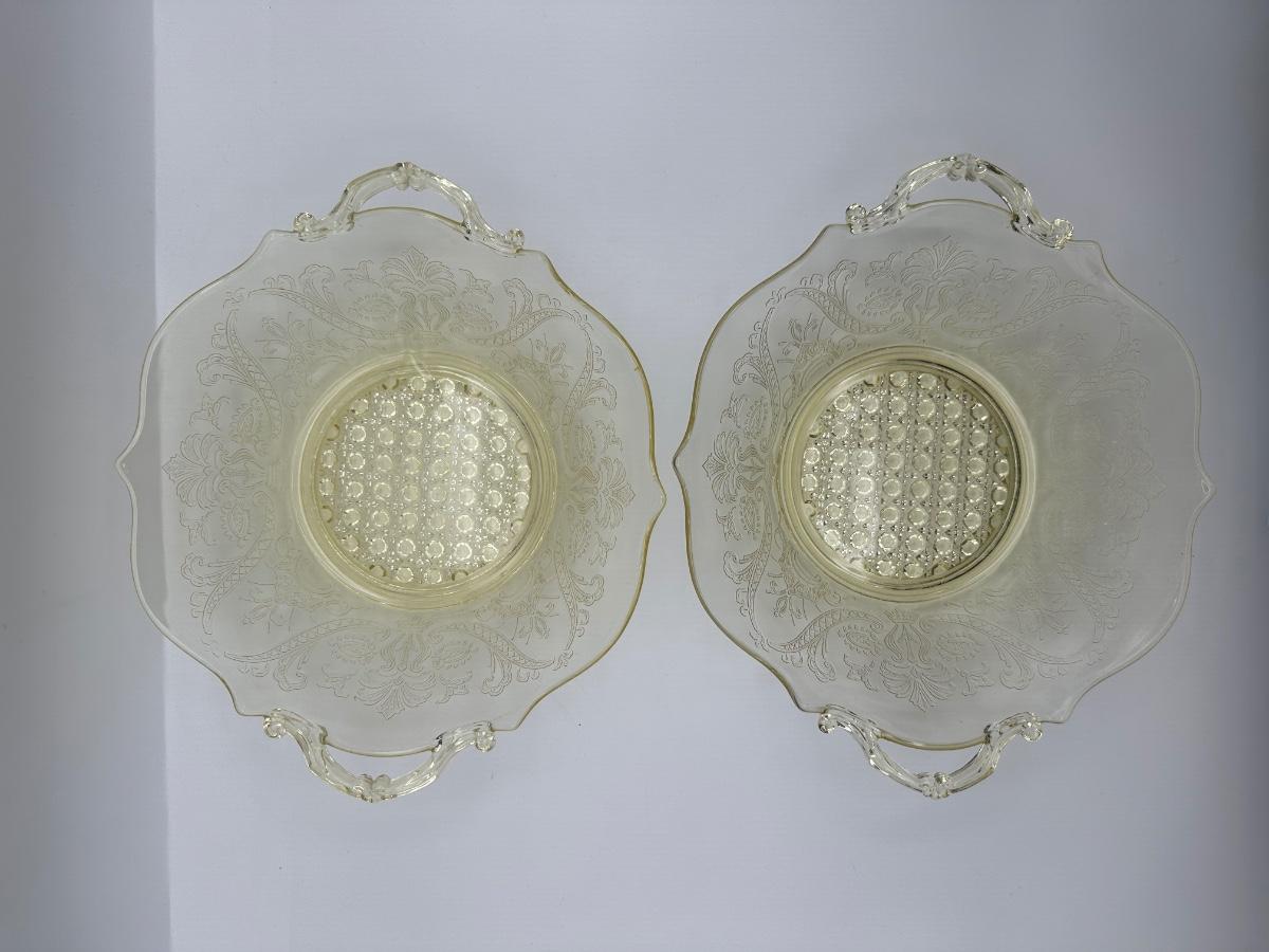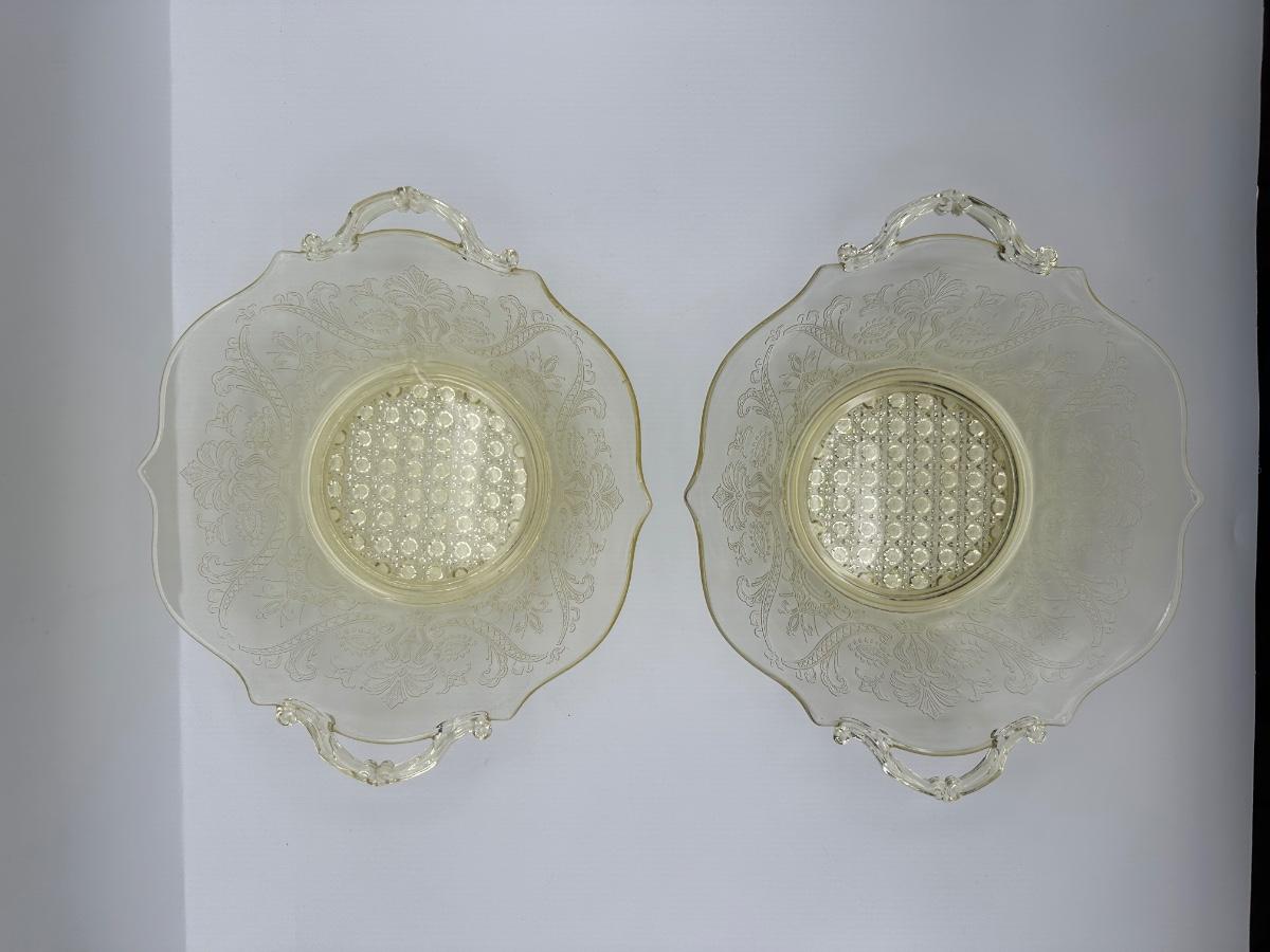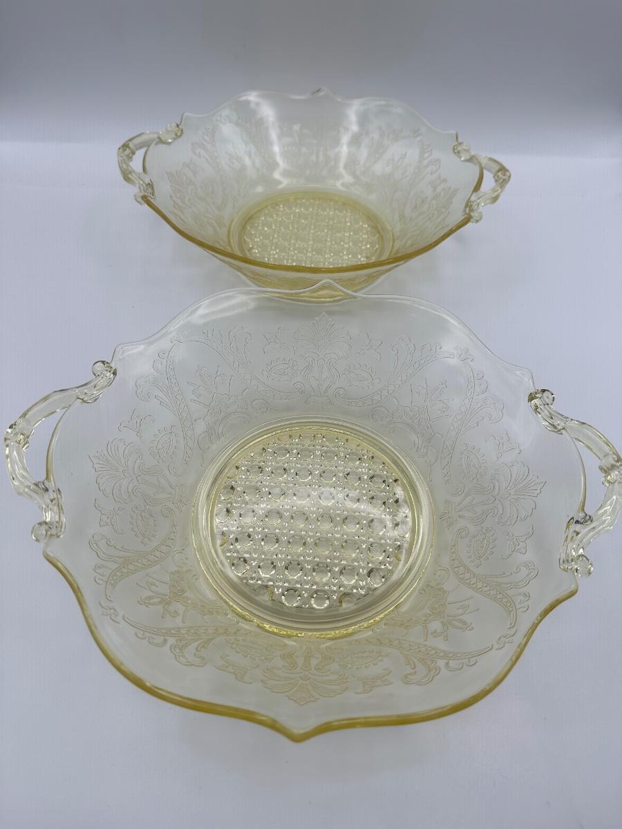Vintage Lancaster Glass Company - Landrum Topaz Bowl with Handles (2)