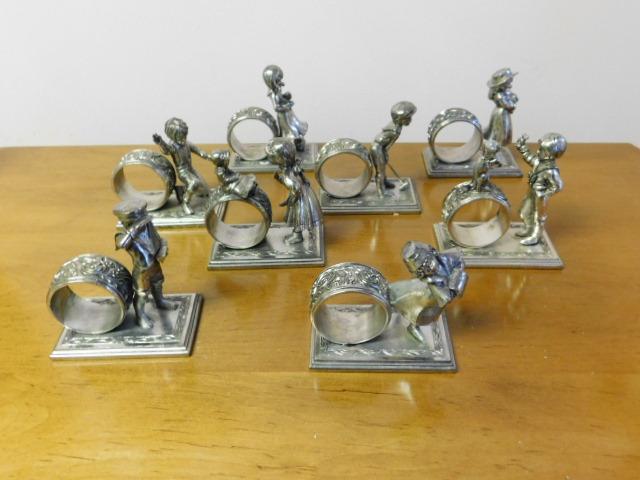 Vintage Lance 1979 Children At Play Silver Plate Napkin Rings 8 Pieces