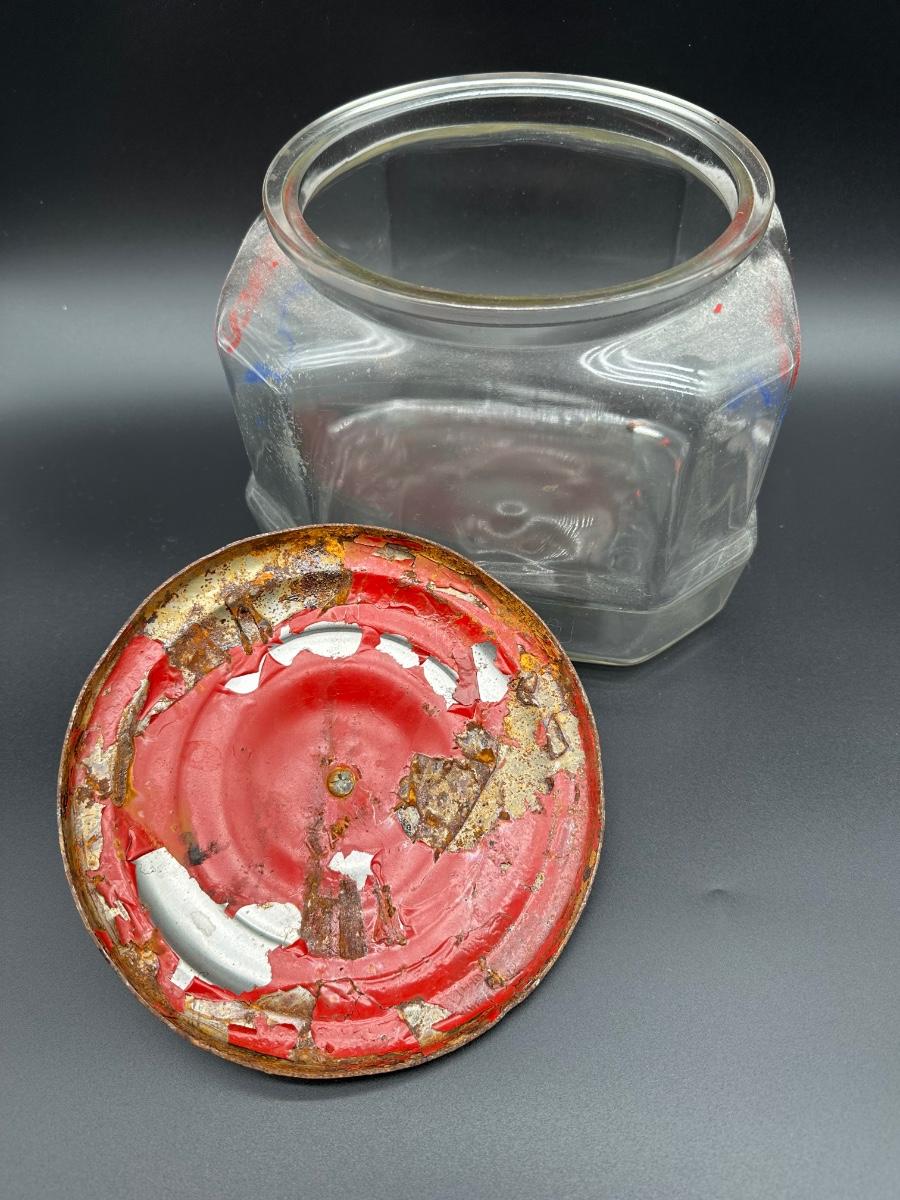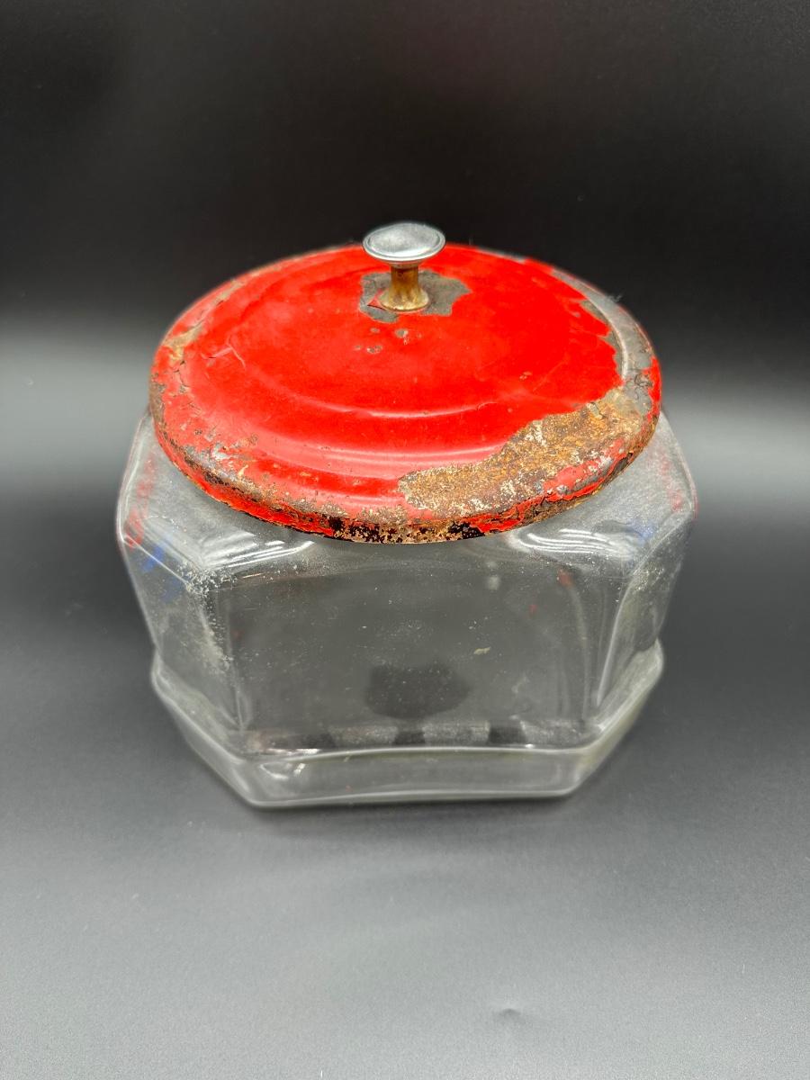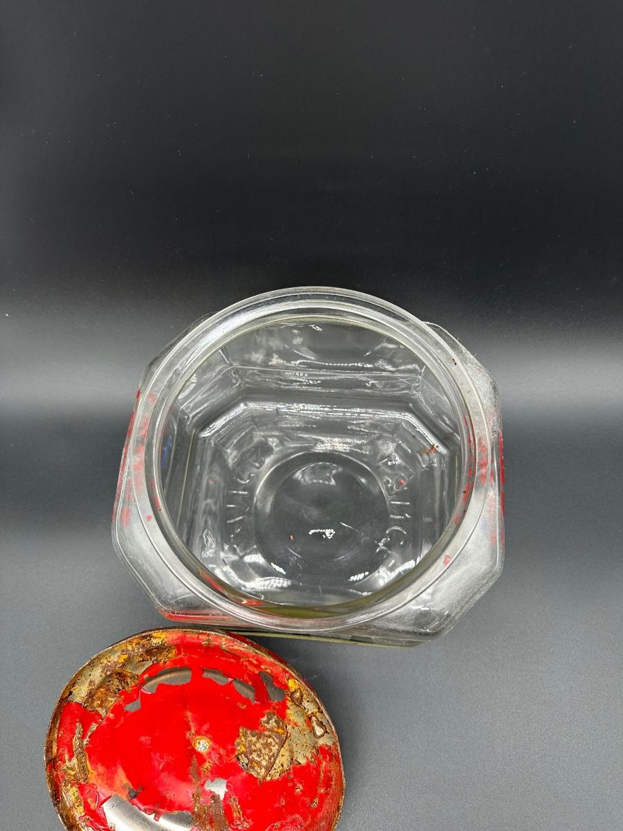 Vintage Lance Glass Countertop Cracker Jar w/ Original Red Metal Lid
