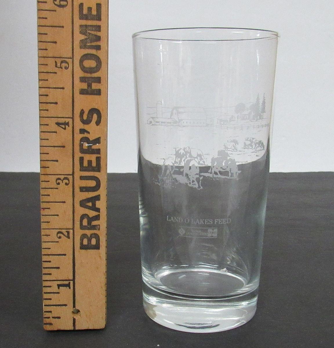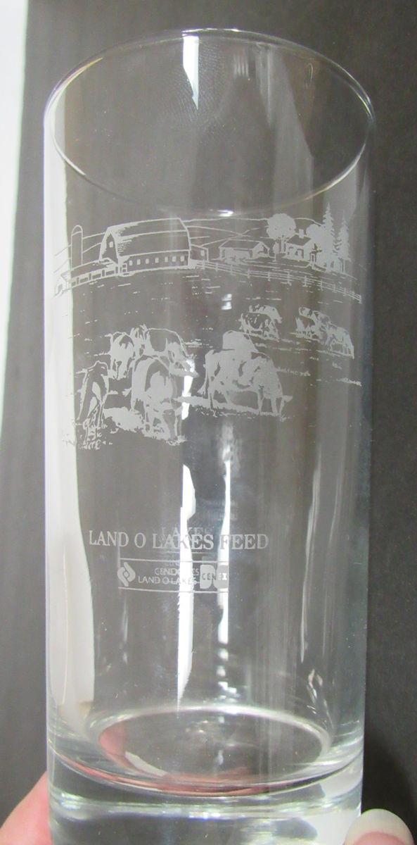 Vintage Land O Lakes Advertising Tumbler Etched Farm Pattern