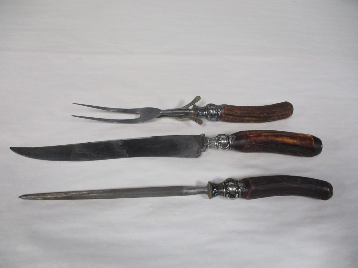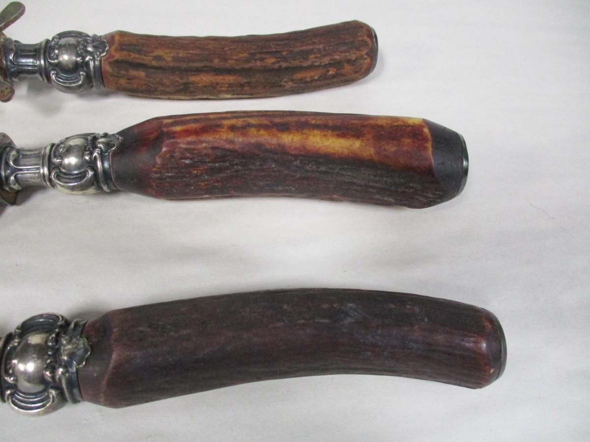 Vintage Landers Frary Clark Etna Works Stag Handle Sterling Collar Cutlery Carving Set