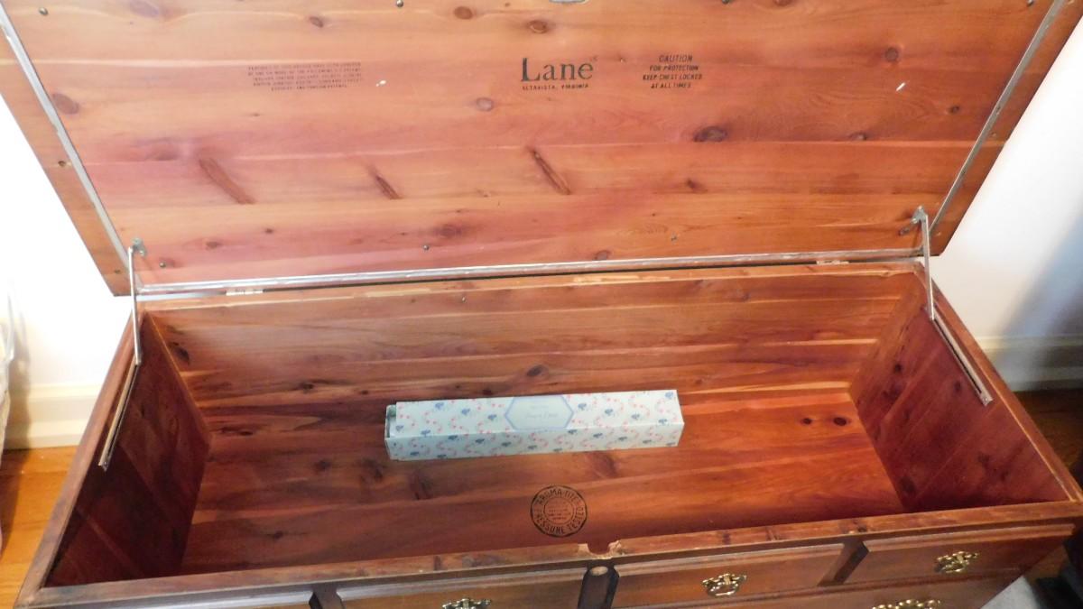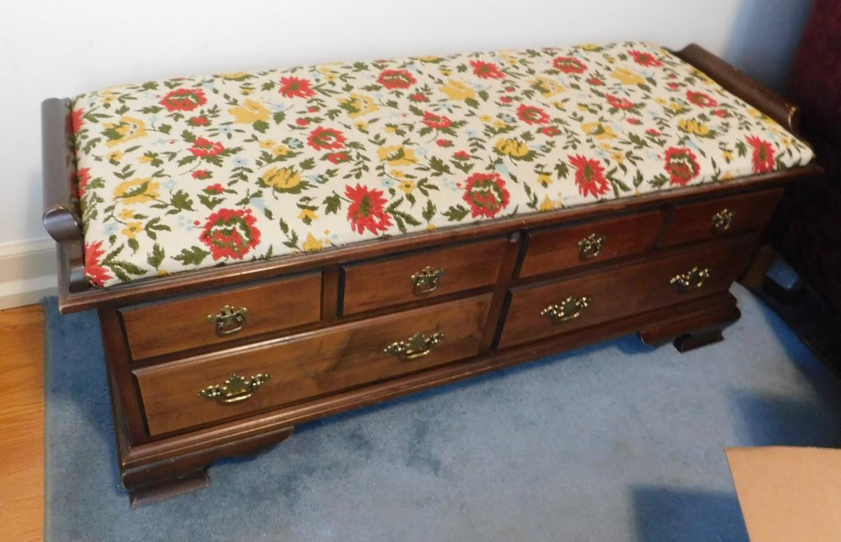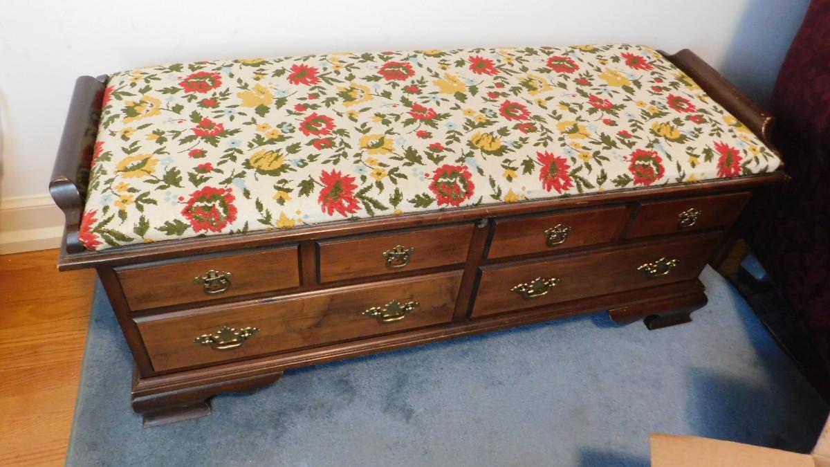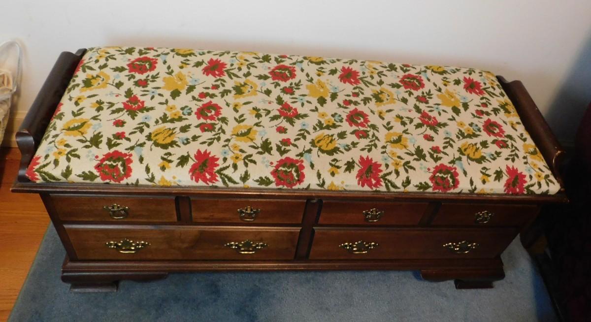 Vintage Lane Chest with Cushioned Top 47"x18"x23" lock is missing as shown