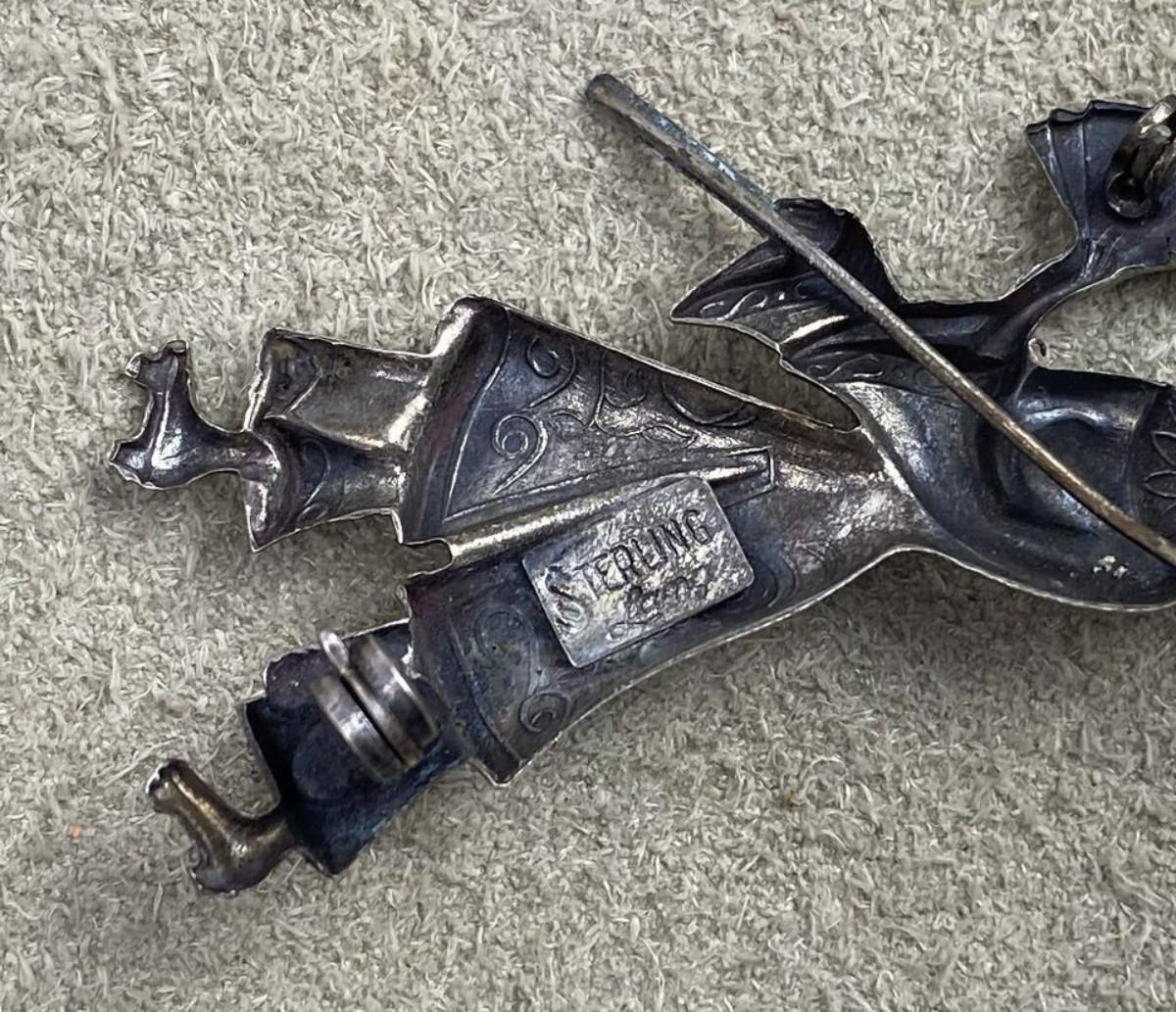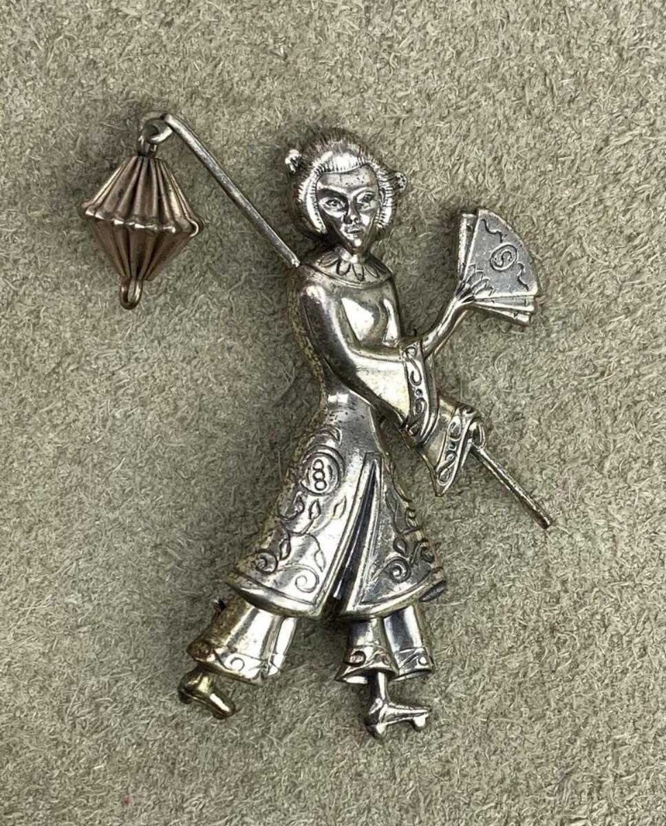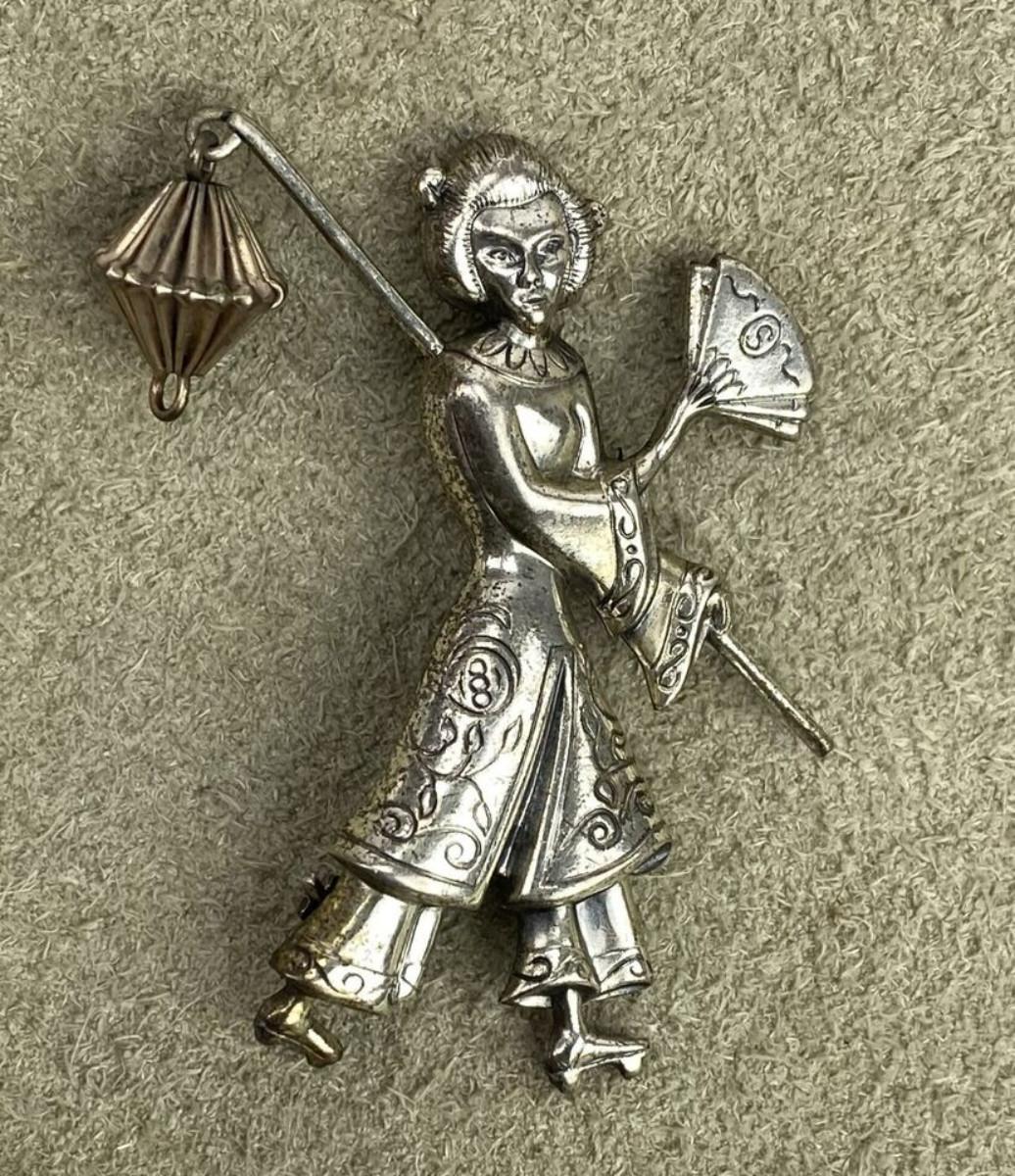 vintage LANG STERLING & VERMEIL JAPANESE GEISHA FIGURAL BROOCH