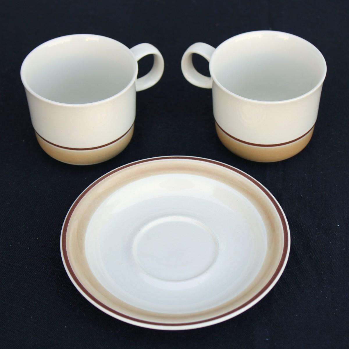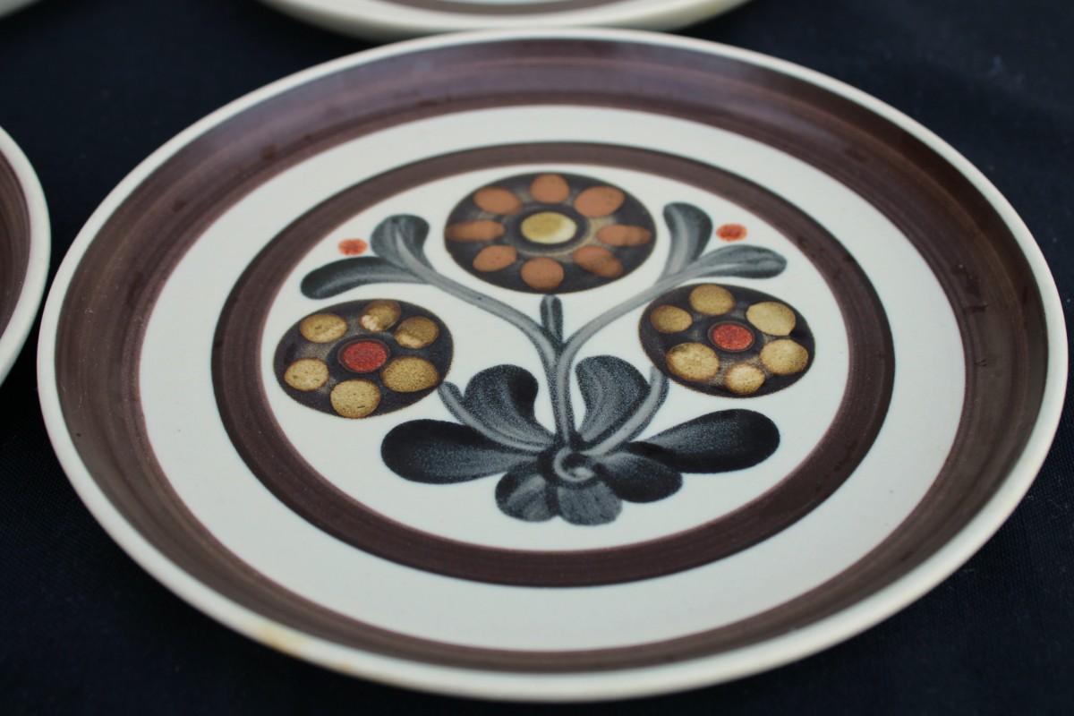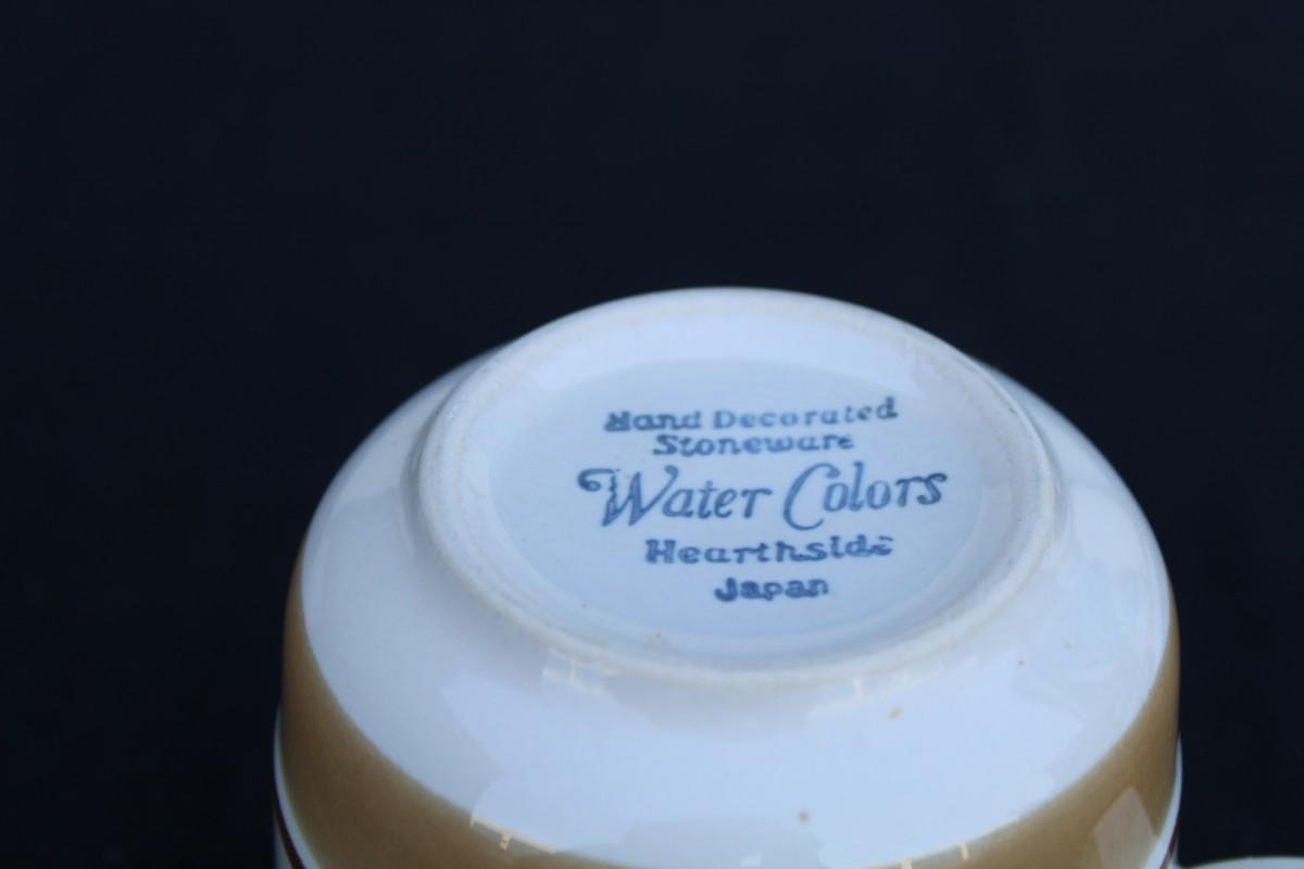 Vintage Langely England Pottery Plates, Mayflower print. Set of 4. Excellent condition. Watercolors Hearthside Coffee Cups and Saucer. Good condition.