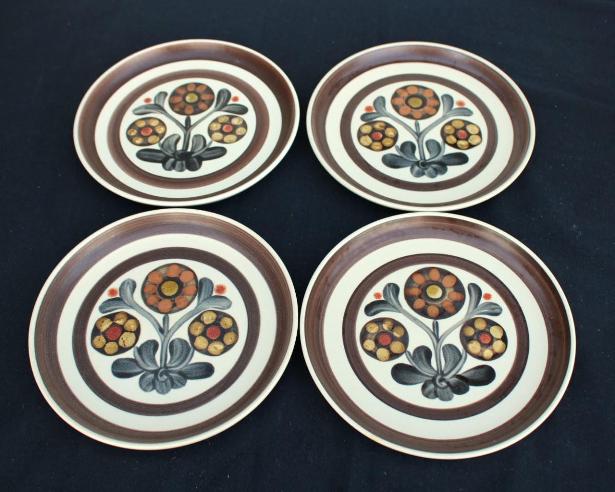 Vintage Langely England Pottery Plates, Mayflower print.  Set of 4. Excellent condition.  Watercolors Hearthside Coffee Cups and Saucer. Good condition.