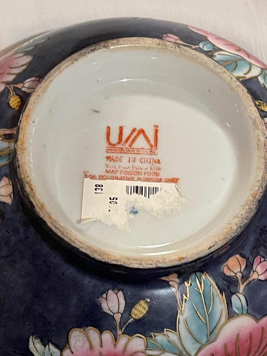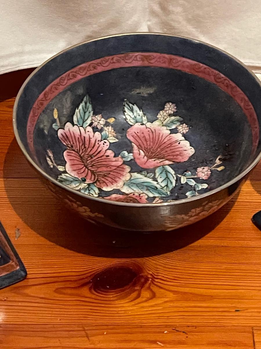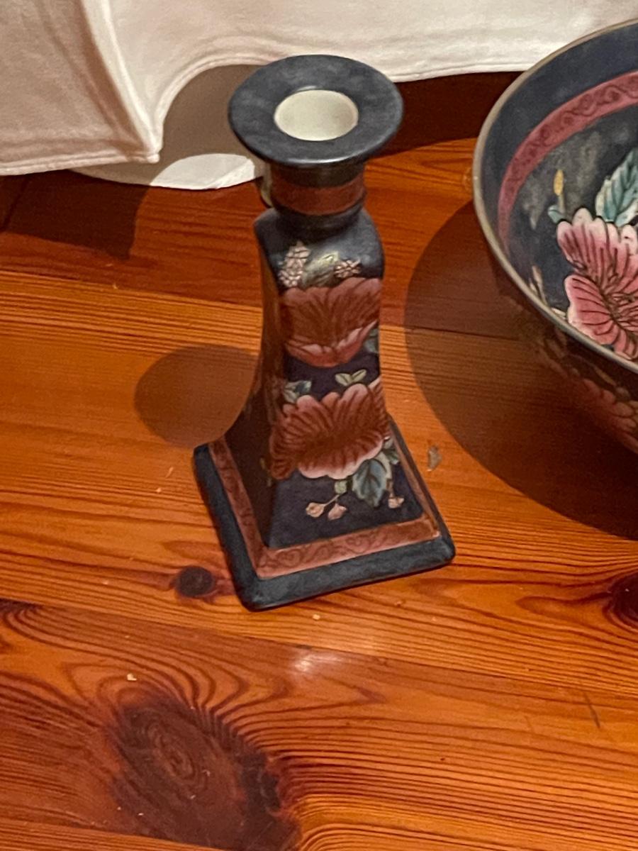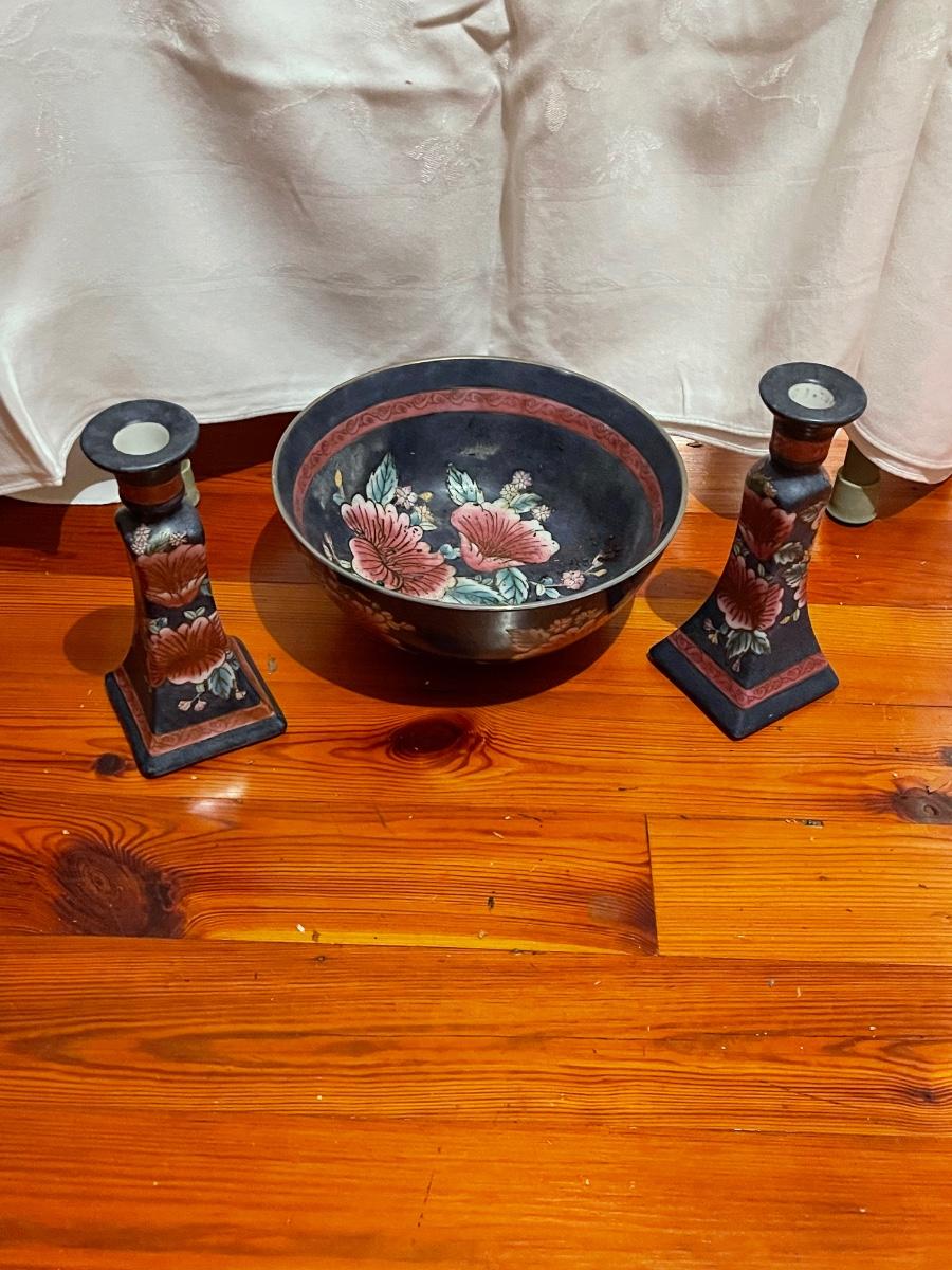 Vintage Large and Heavy Ceramic Floral Bowl and Matching Candlesticks