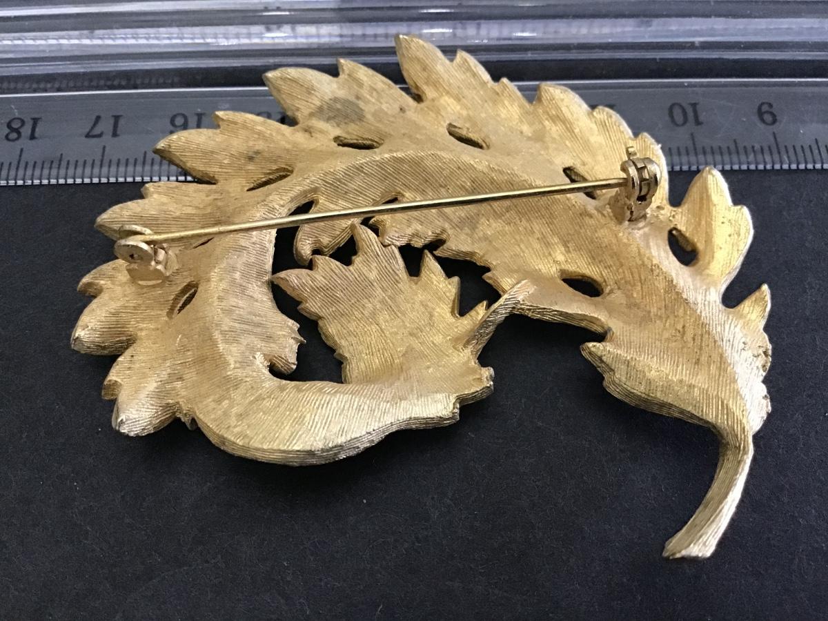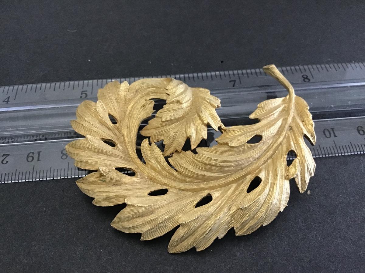 Vintage Large Antique Gold Tone Feather Leaf Brooch