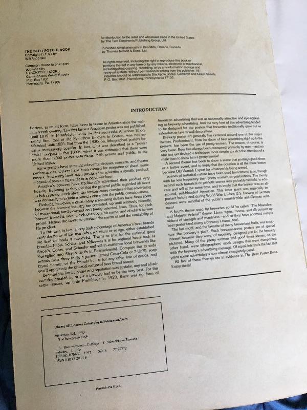 THIS 16" HIGH BY 11 INCH WIDE PAPERBACK BEER POSTER BOOK IS IN NICE CONDITION. MINOR SCUFFING, EDGEWEAR/DISCOLORATION ON COVERS & SPINE. INCLUDED ARE 23 BEER POSTERS SUITABLE FOR FRAMING.