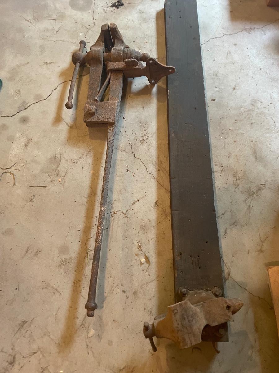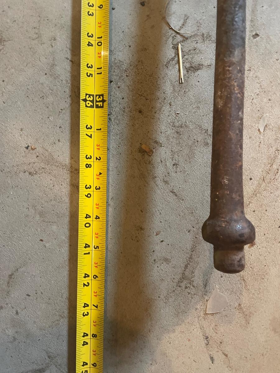 The large one measures 41 inches long. The one attached to the wood is 11 inches long