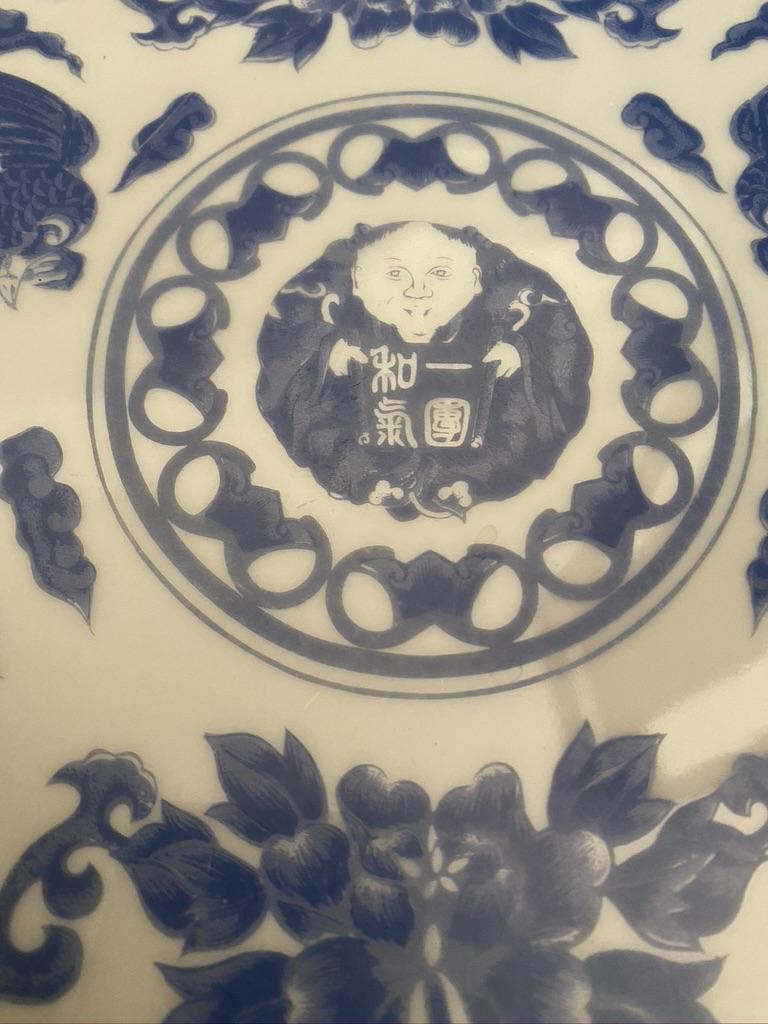 Vintage Large Blue and White Porcelain Taiwanese Round Serving Platter with deminations 14.5ʺW × 14.5ʺD × 2ʺH