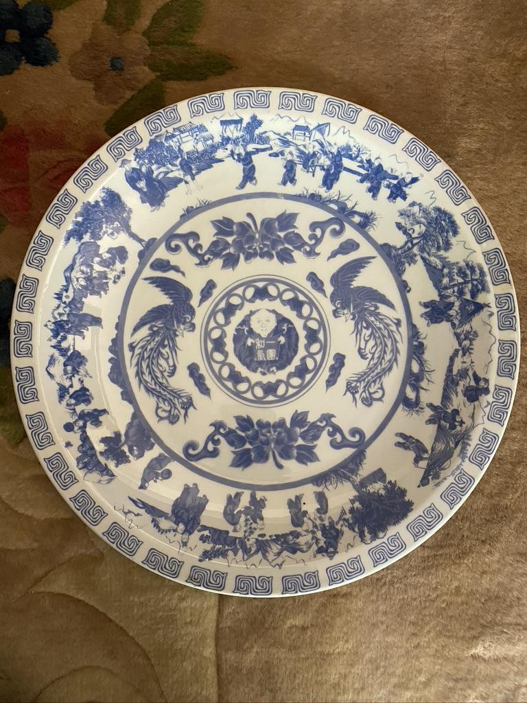 Vintage Large Blue and White Porcelain Taiwanese Round Serving Platter 2 of 2