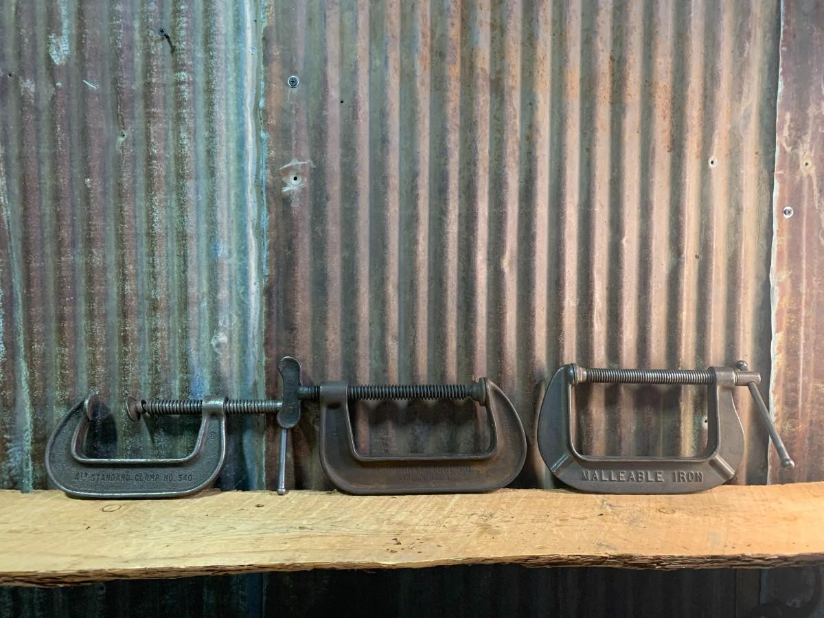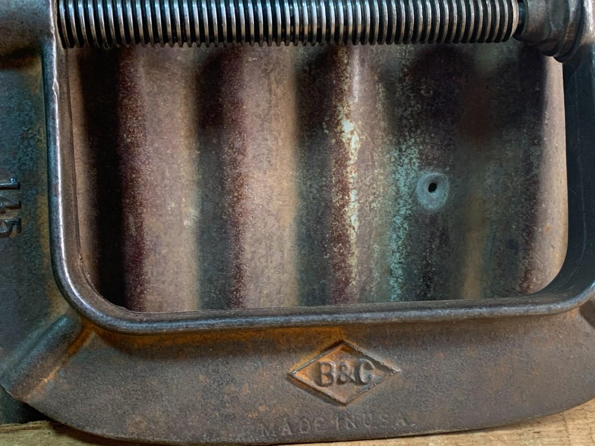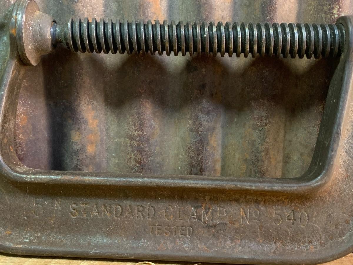 Usable C Clamps, B & C Malleable Iron, Cincinnati Tool - 4" Standard Clamp No. 540, 5" Standard Clamp No. 540. No Defects or Rust. Winning Bid Buys All Items Shown, All Item(s) are Sold As Is - Photo's Are Part of the Description - Pickup by Appointment, or Shipping is Available (Buyer Pays)