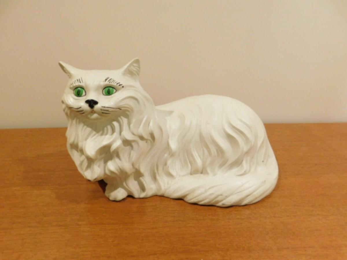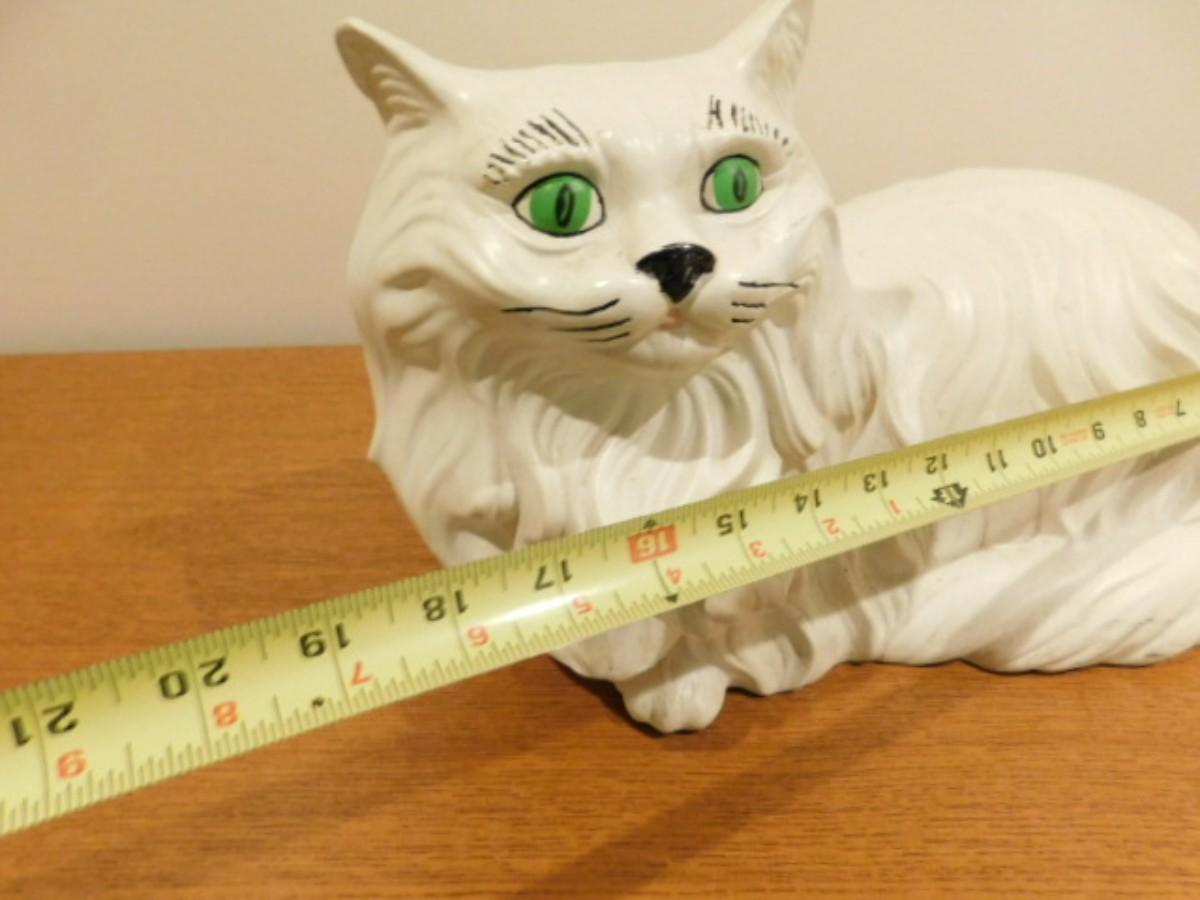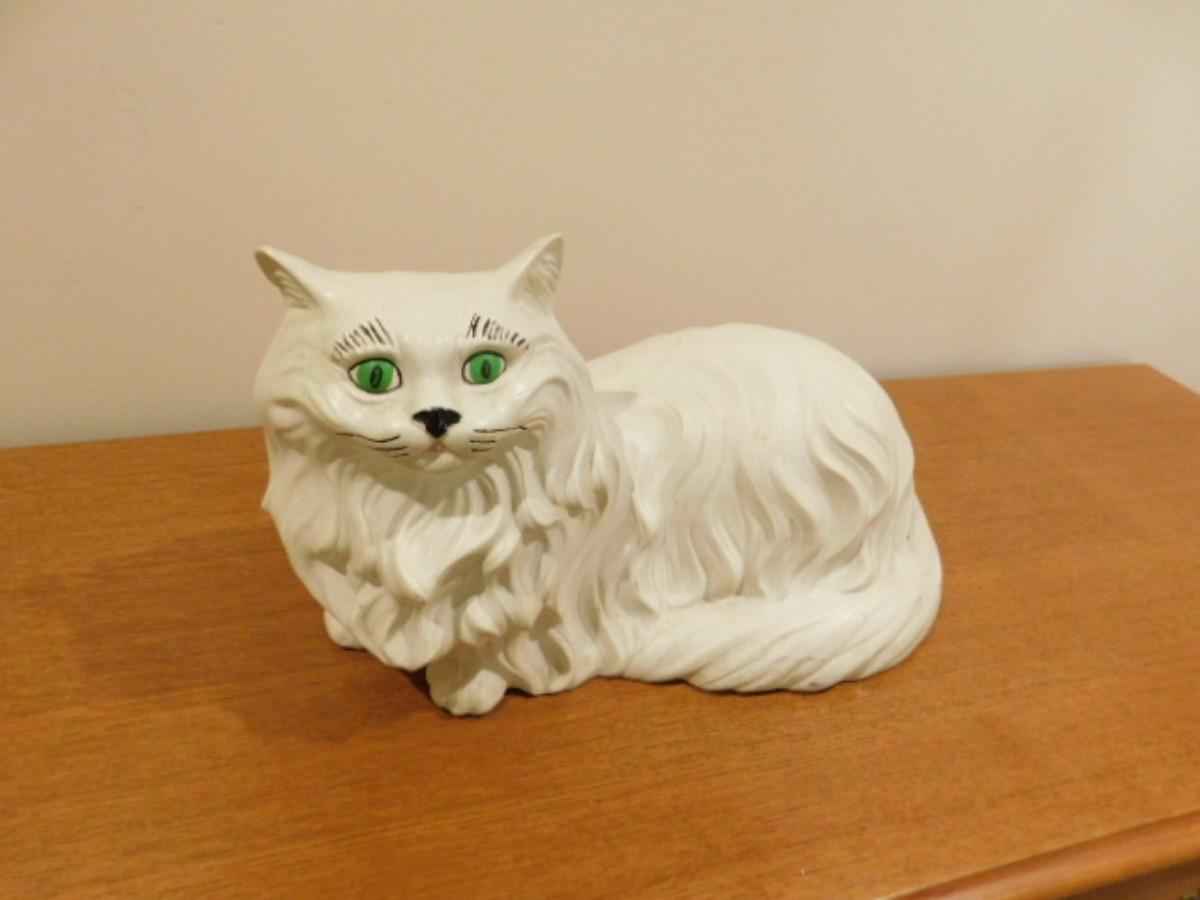Vintage Large Ceramic Cat with Painted Green Eyes