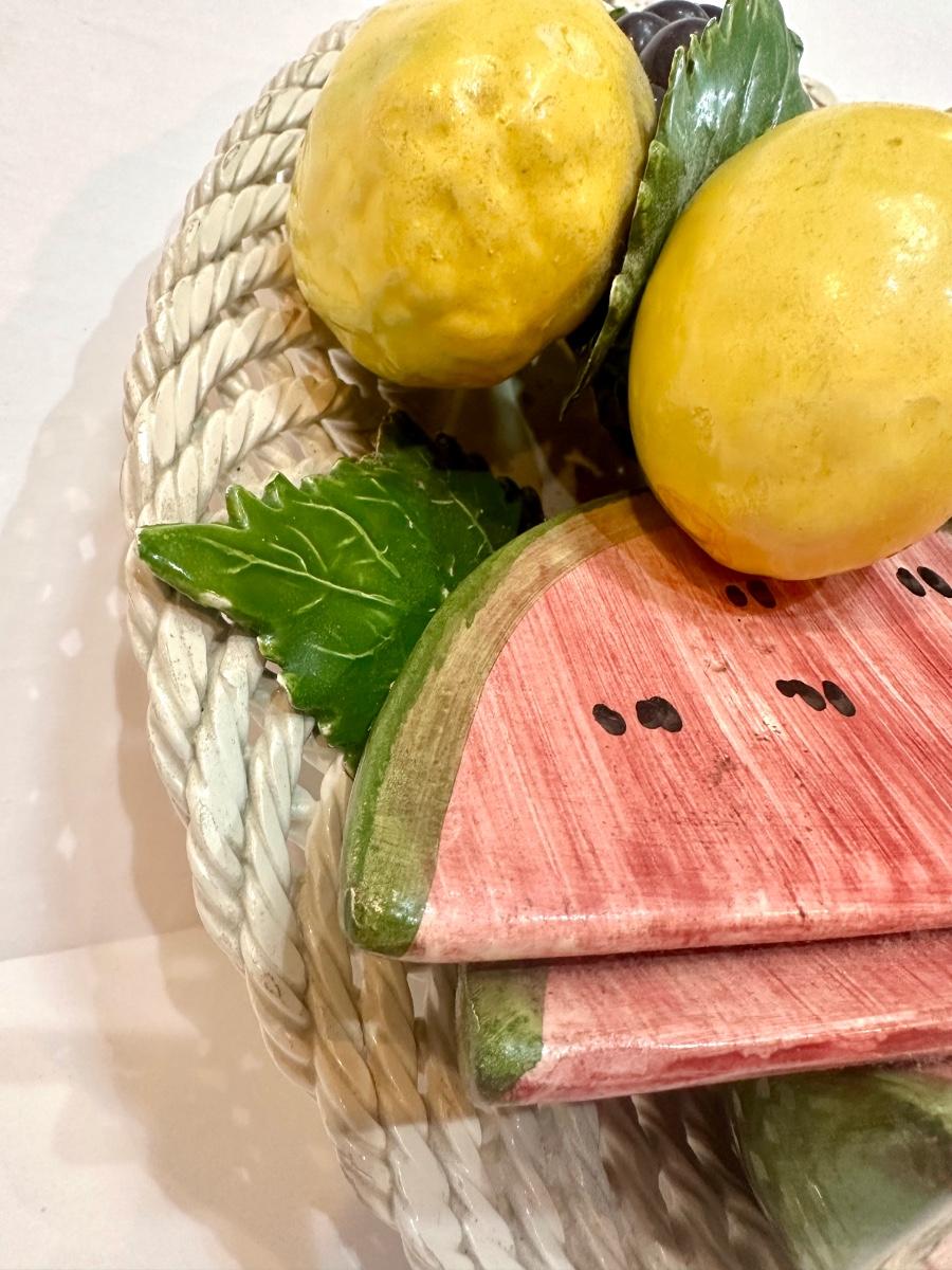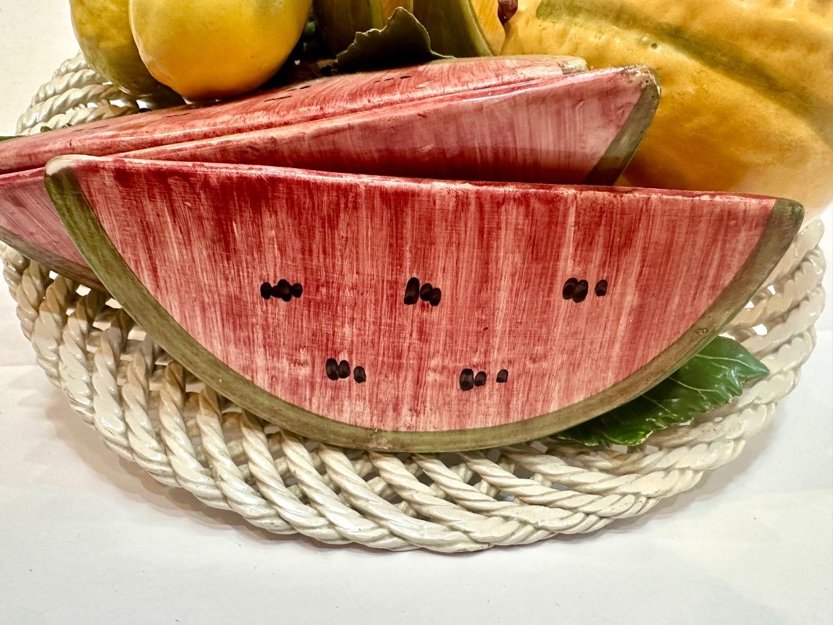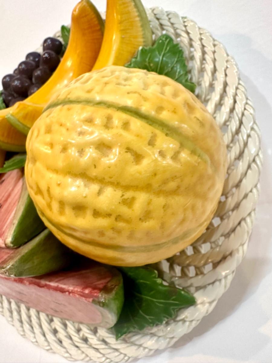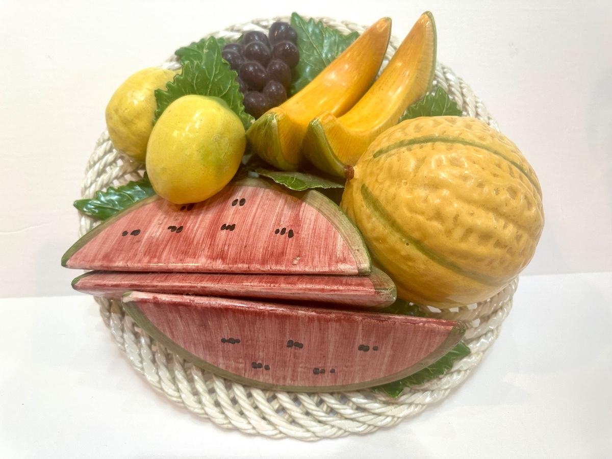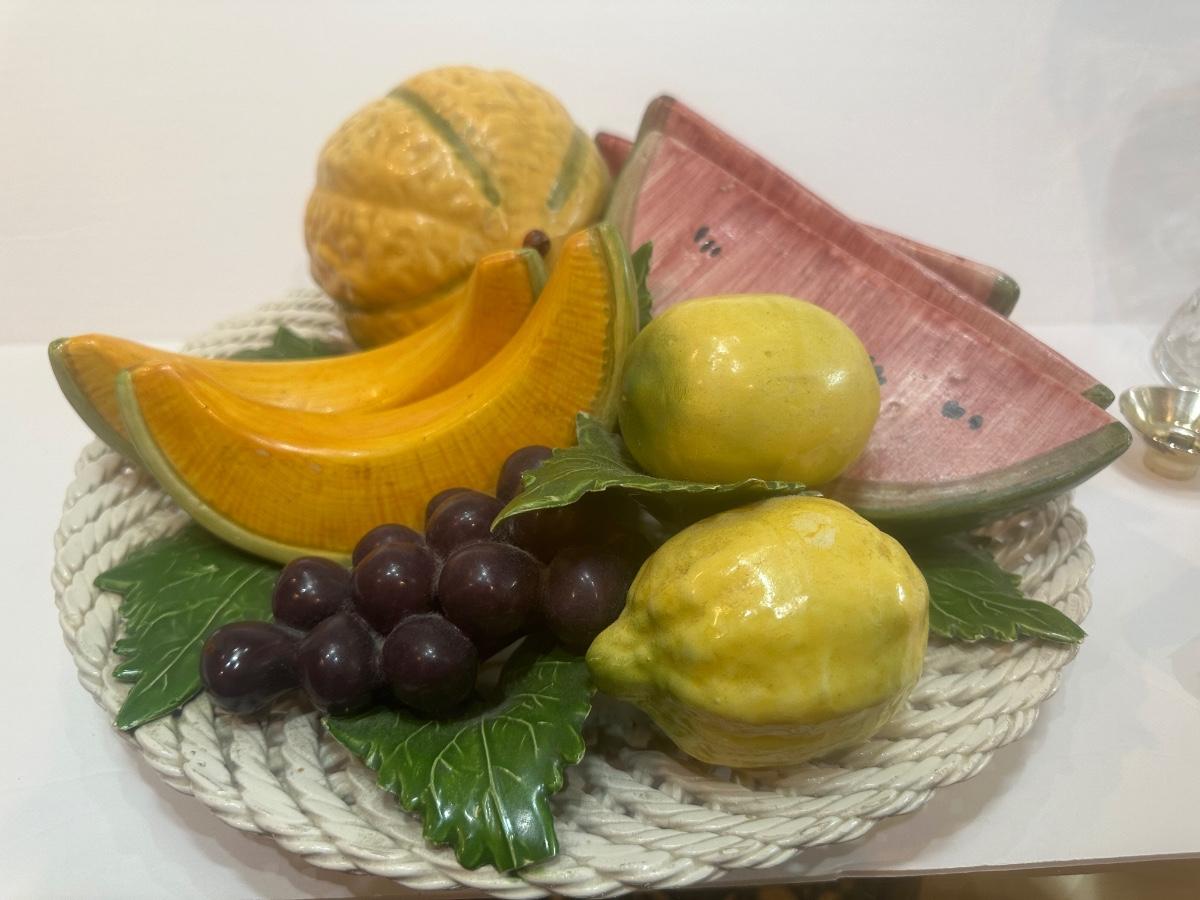 Beautiful ceramic round fruit platter (all fruit are affixed to base). Hand painted from Italy, 14” round and heavy (consider that for shipping).
