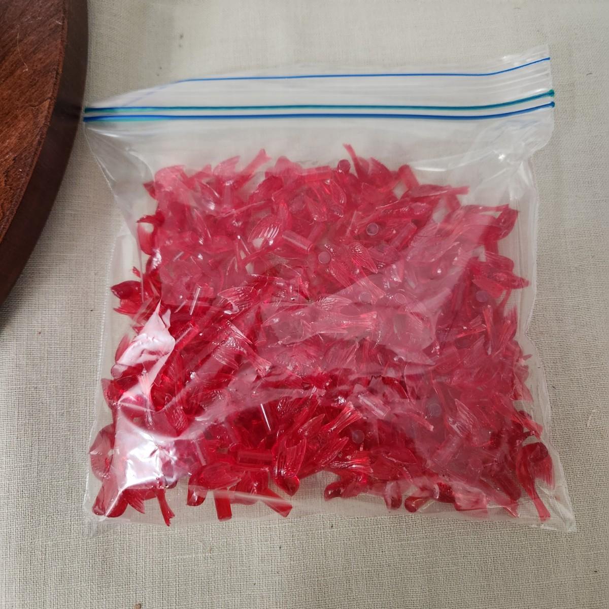 Rest of red doves bird in bag.
