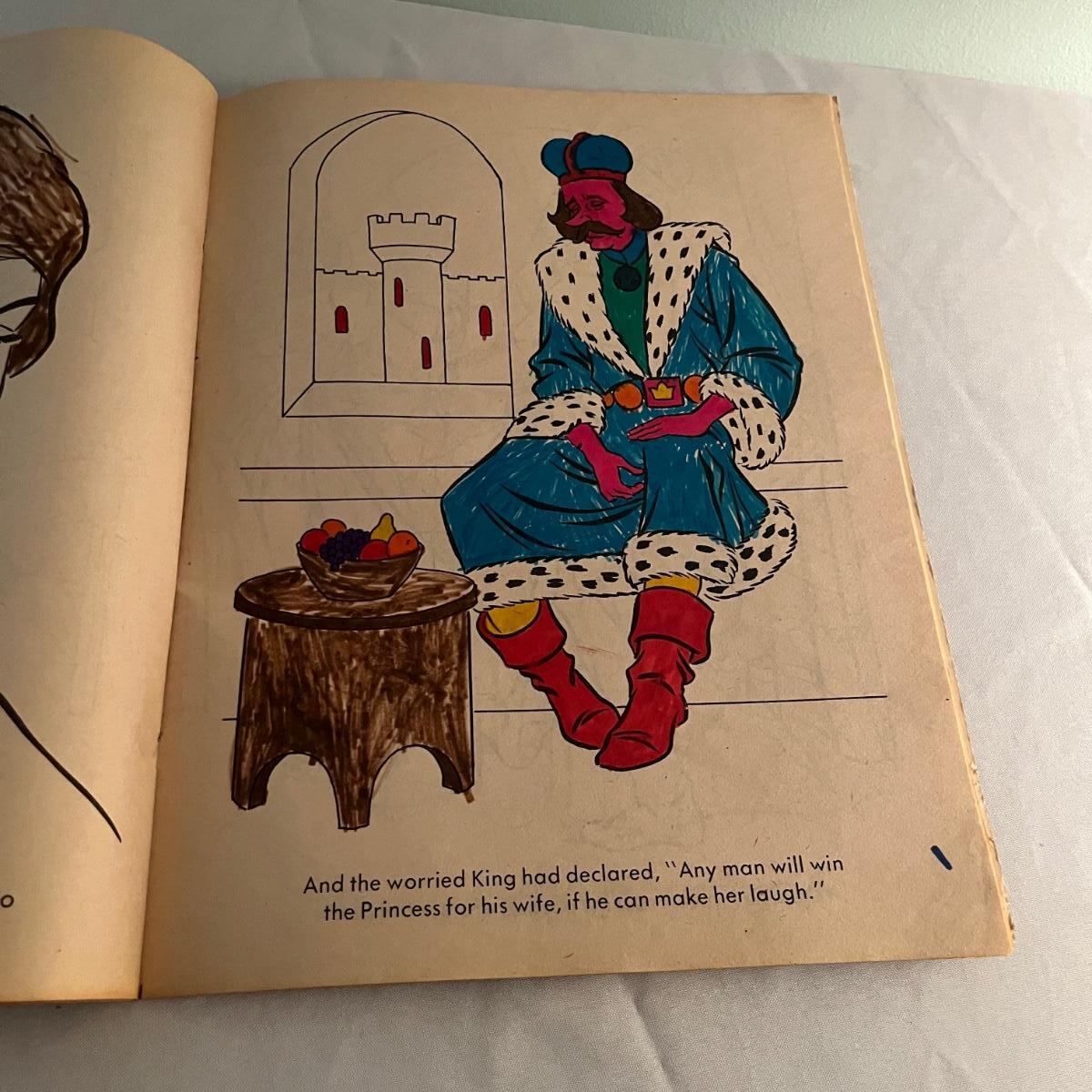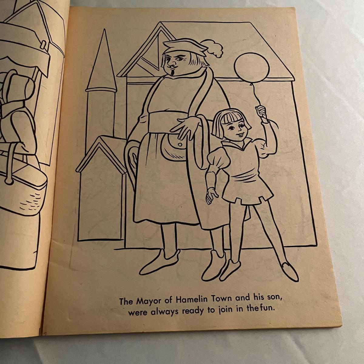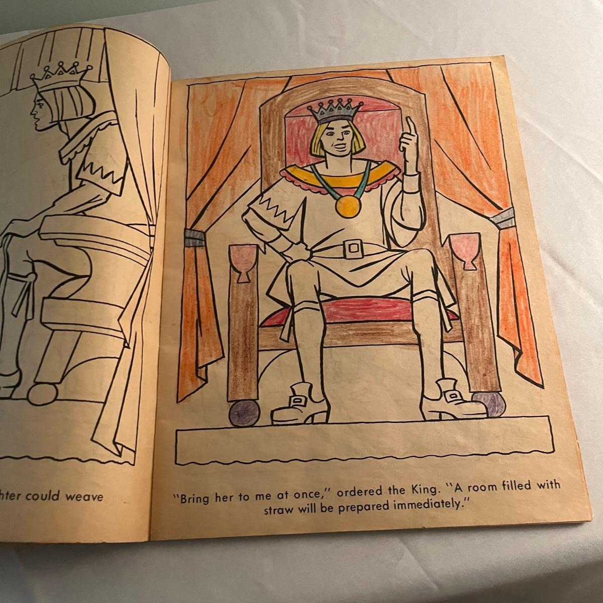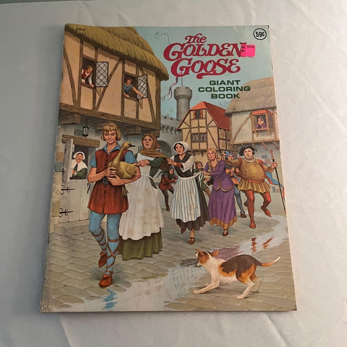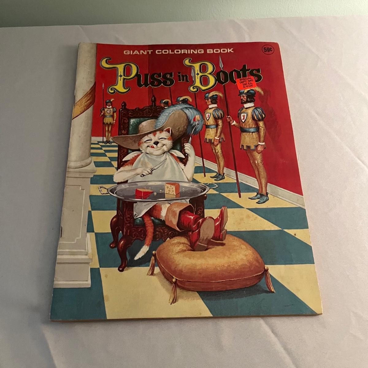 Lot includes two The Night Before Christmas coloring books that appear unused, Puss in Boots, The Pied Piper, The Golden Goose and Rumplestiltskin coloring books that have been colored in on a few pages. Largest books measure 17” x 21.75”.