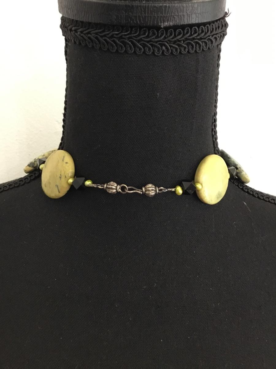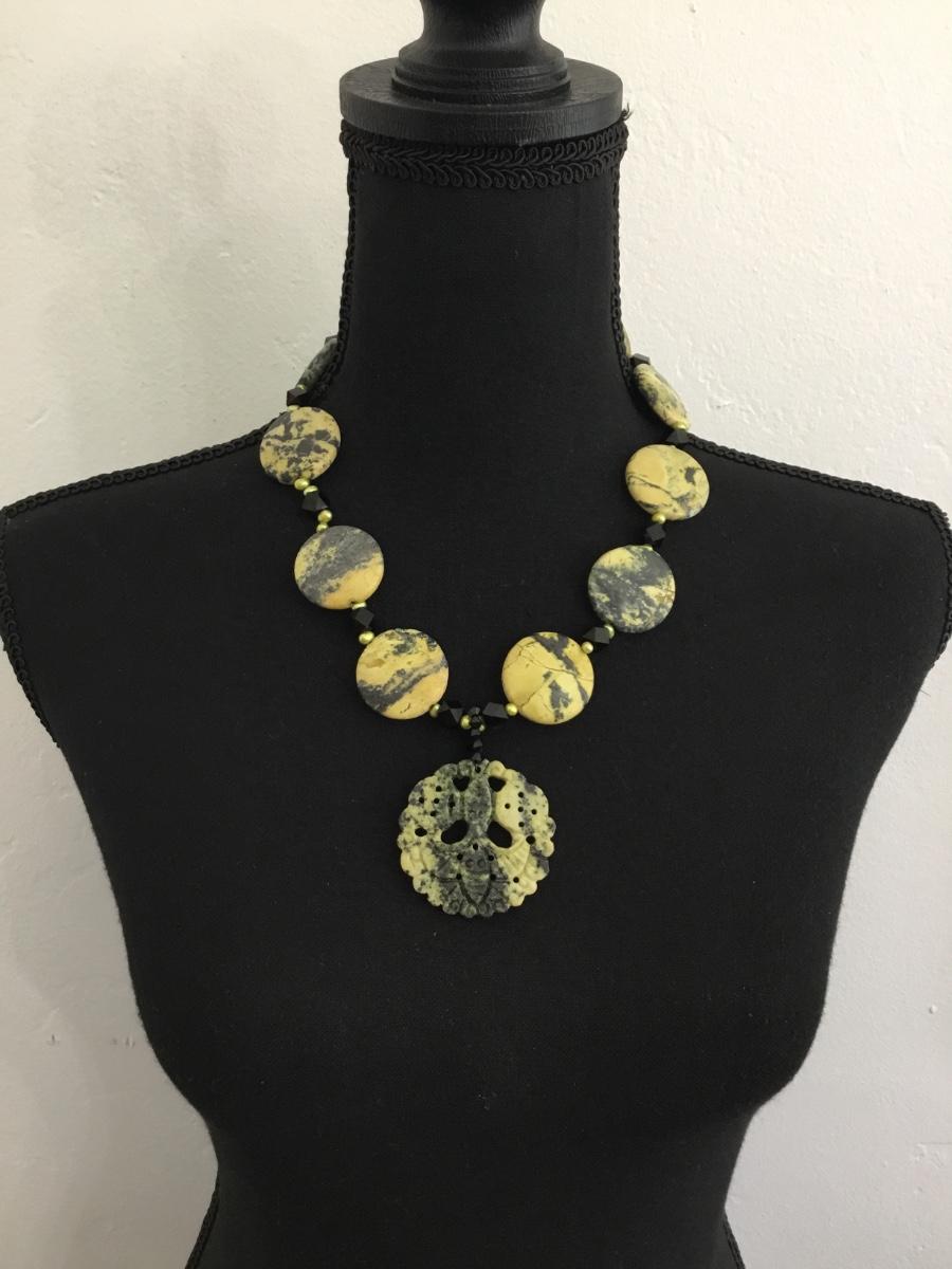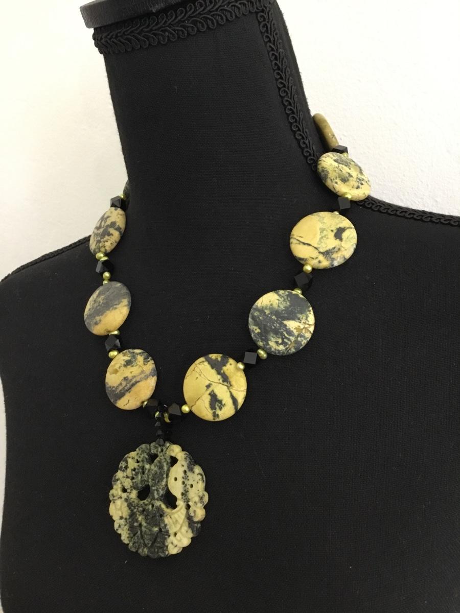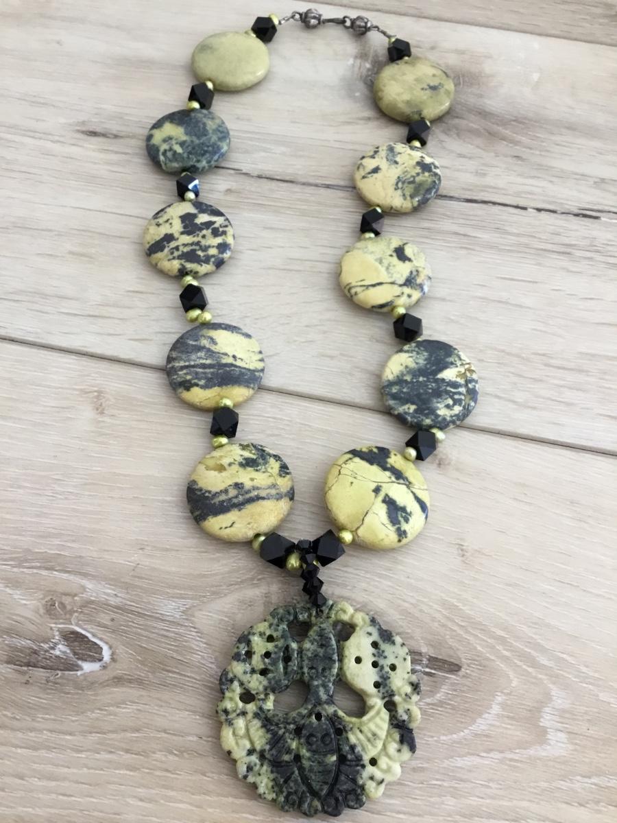 Vintage Large Dendritic jasper stone and carved pendant necklace