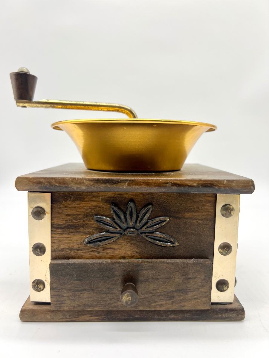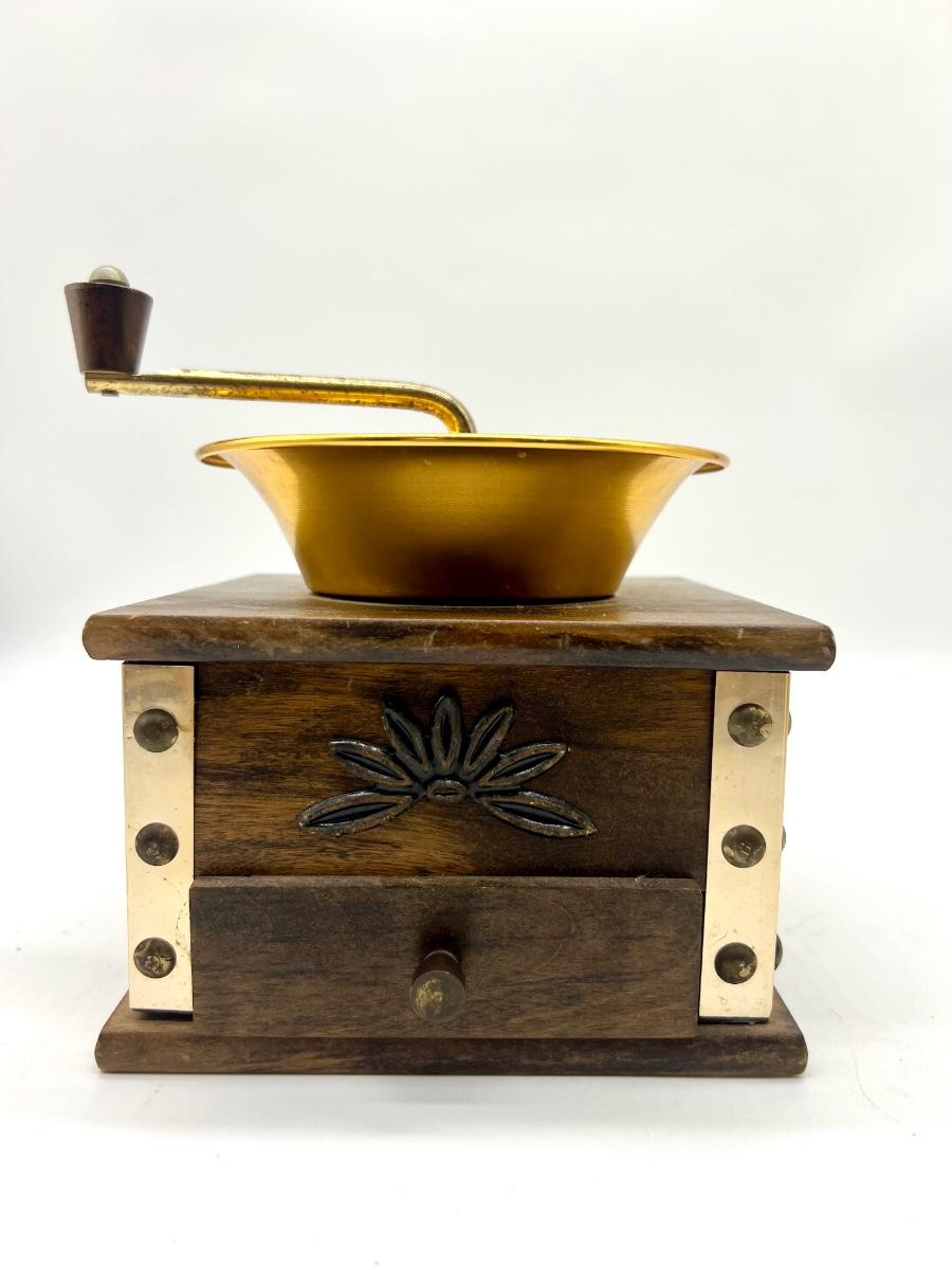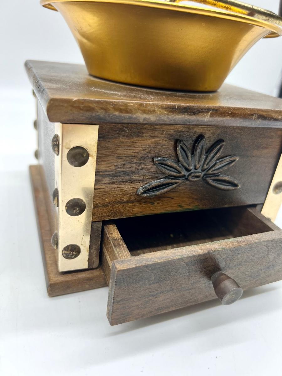 Vintage Large Gail Craft Wood & Brass Manual Hand Crank Coffee Spice Grinder