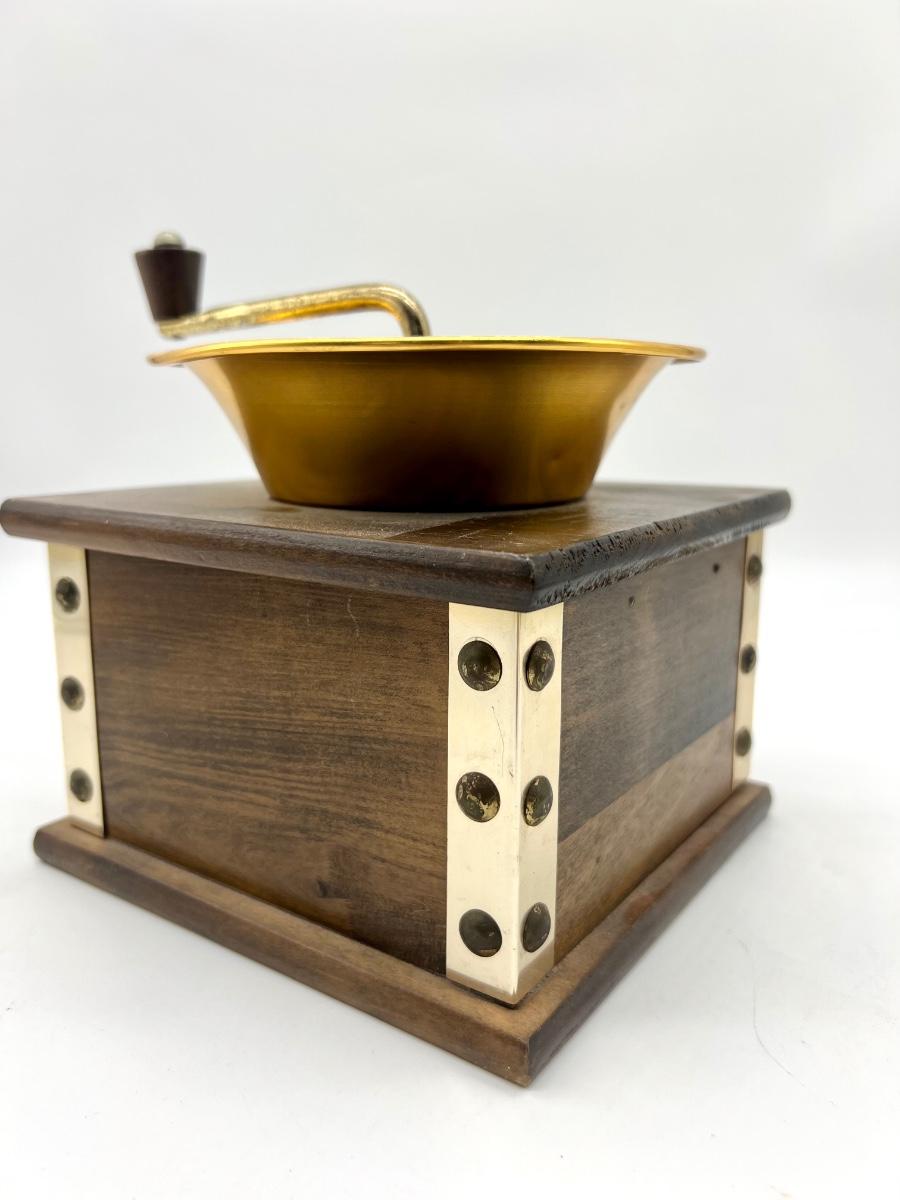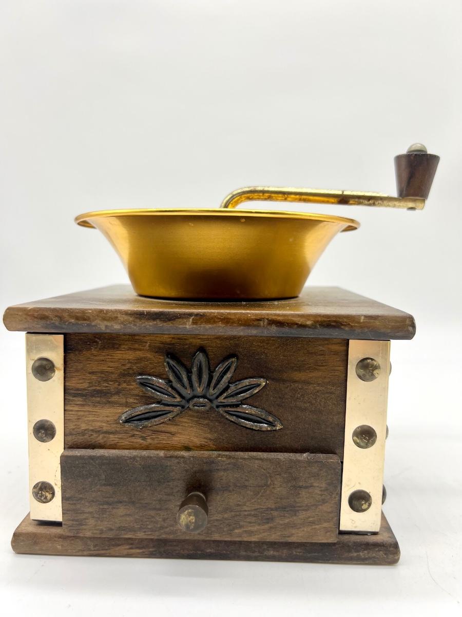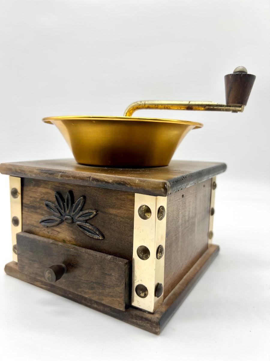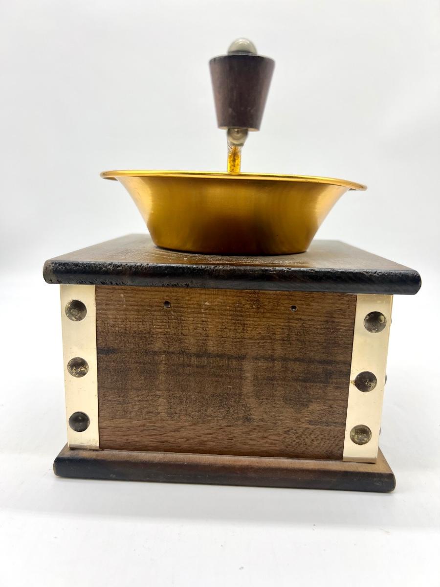 Vintage Large Gail Craft Wood & Brass Manual Hand Crank Coffee Spice Grinder