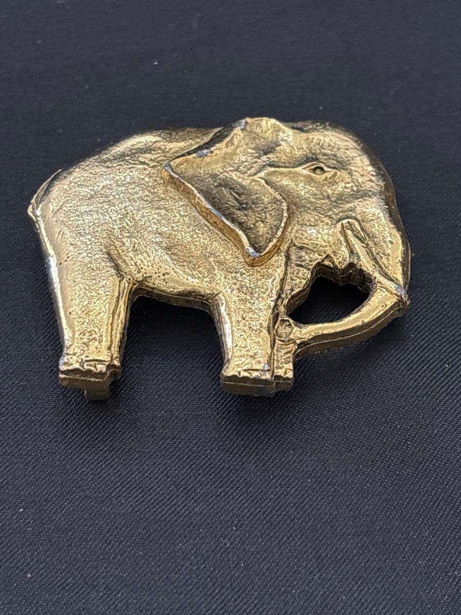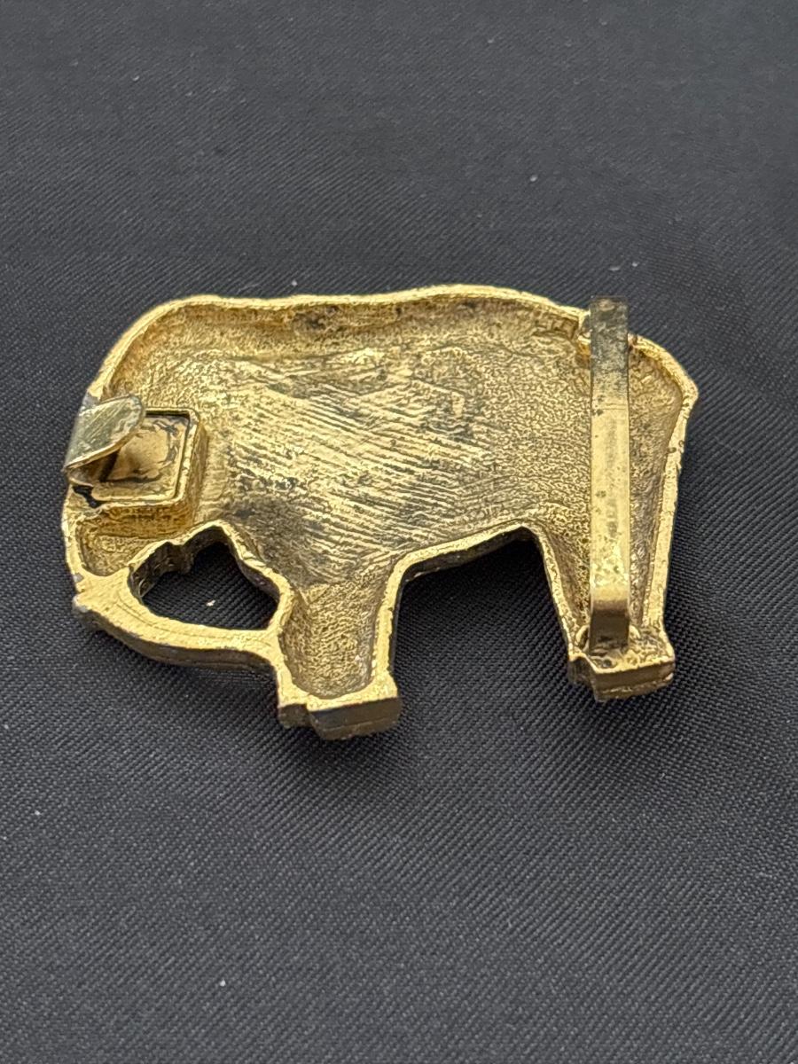 Vintage Large Gold Tone Metal Trunk Down African Elephant belt buckle
