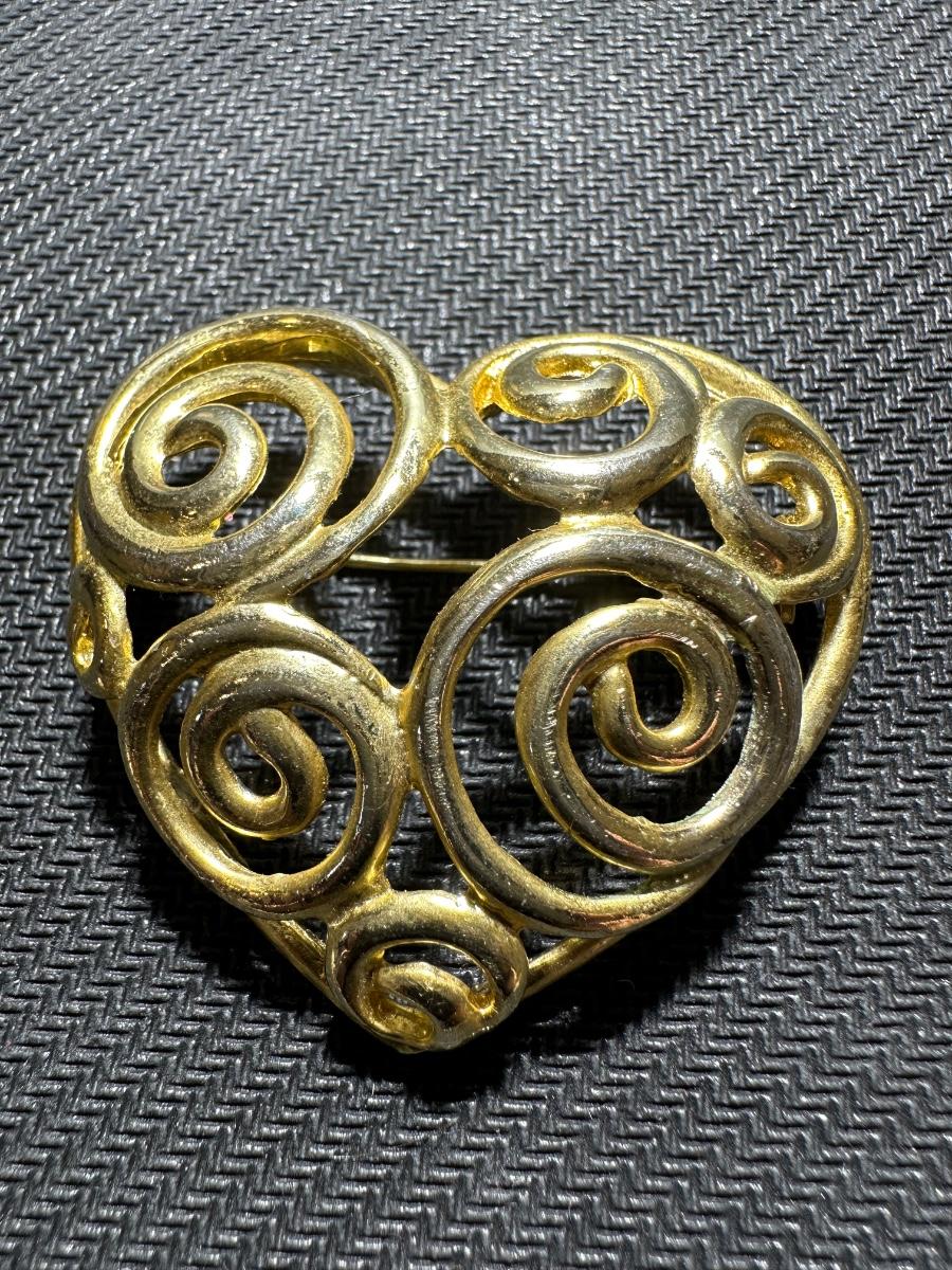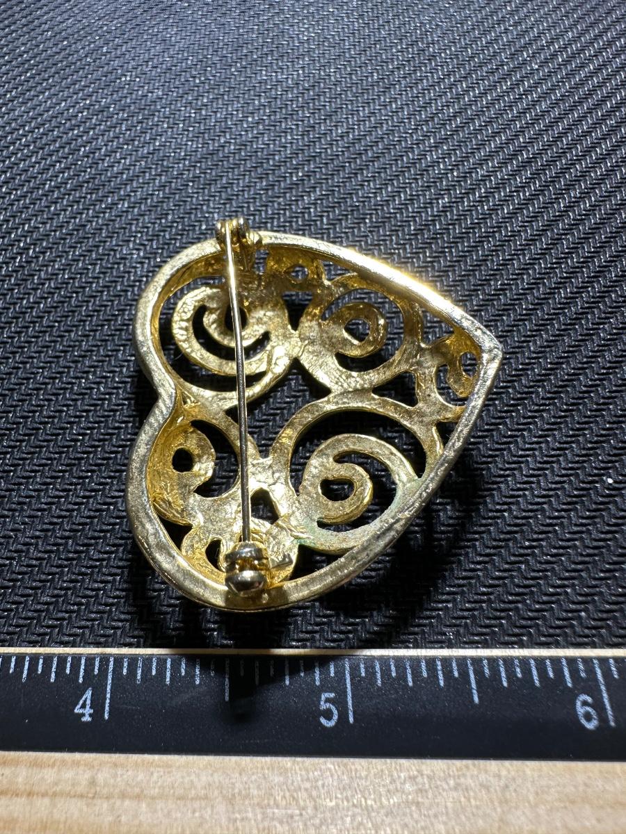 Vintage large Gold tone swirl filigree Heart brooch