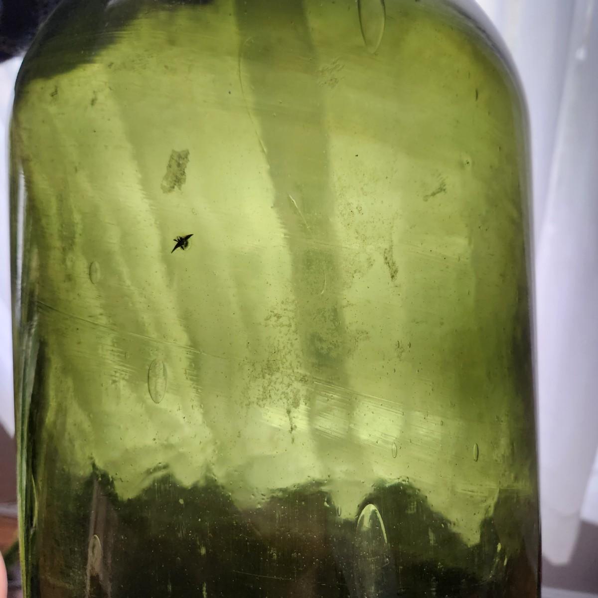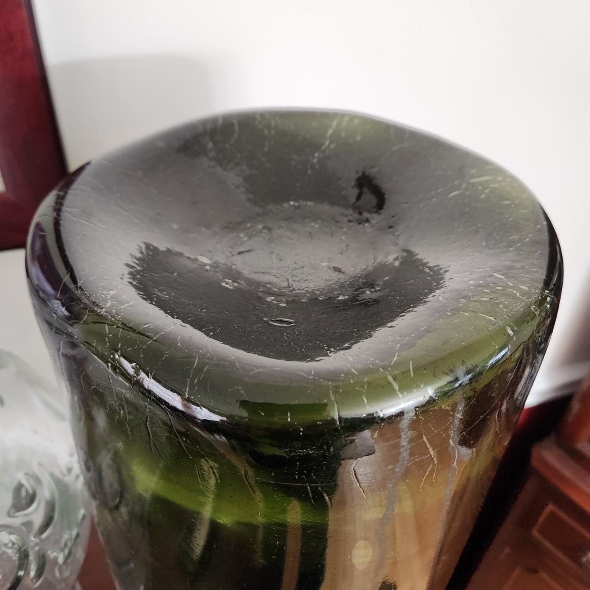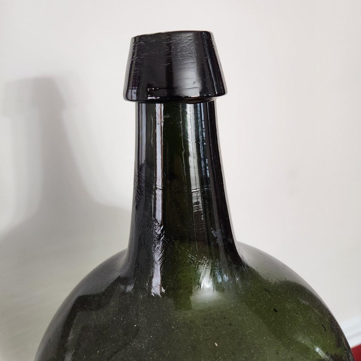 Antique 1800's  Large 20" Demijohn Green Bottle Hand blown Applied Top