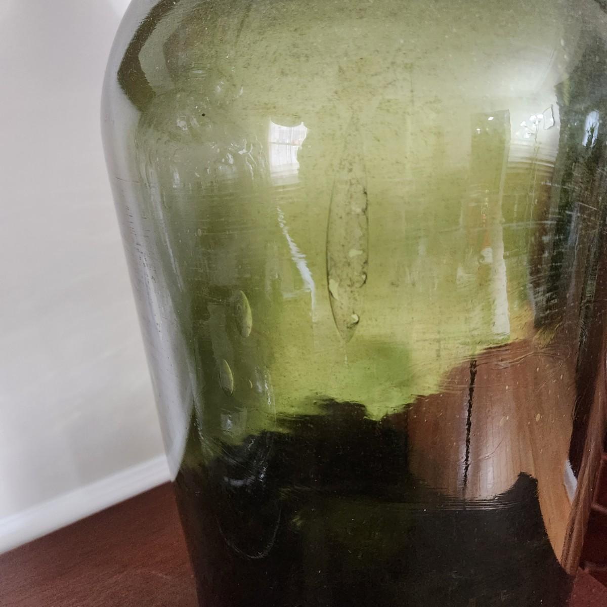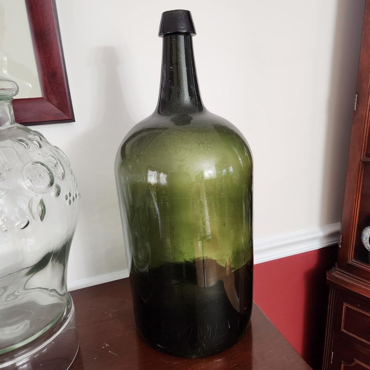 Antique 1800's Large 20" Demijohn Green Bottle Hand blown Applied Top