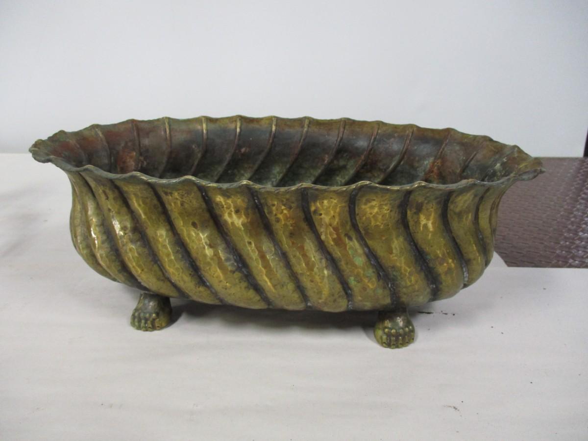 Vintage Large Italian Brass Jardiniere Planter Claw Feet