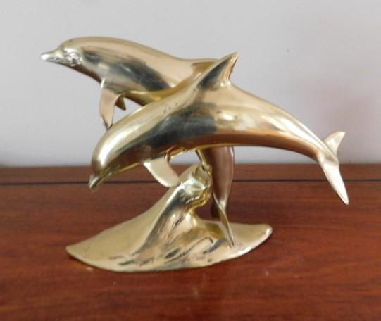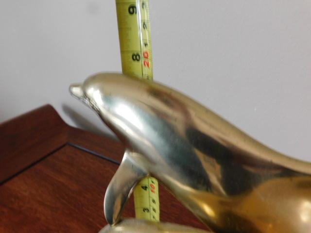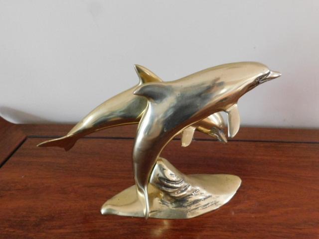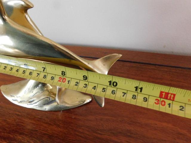 Vintage Large Korean Brass Playful Dophins Statuette 10"