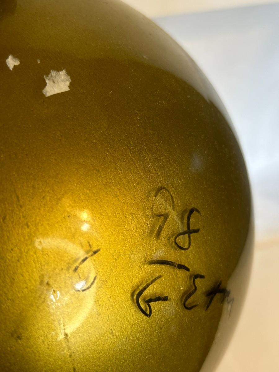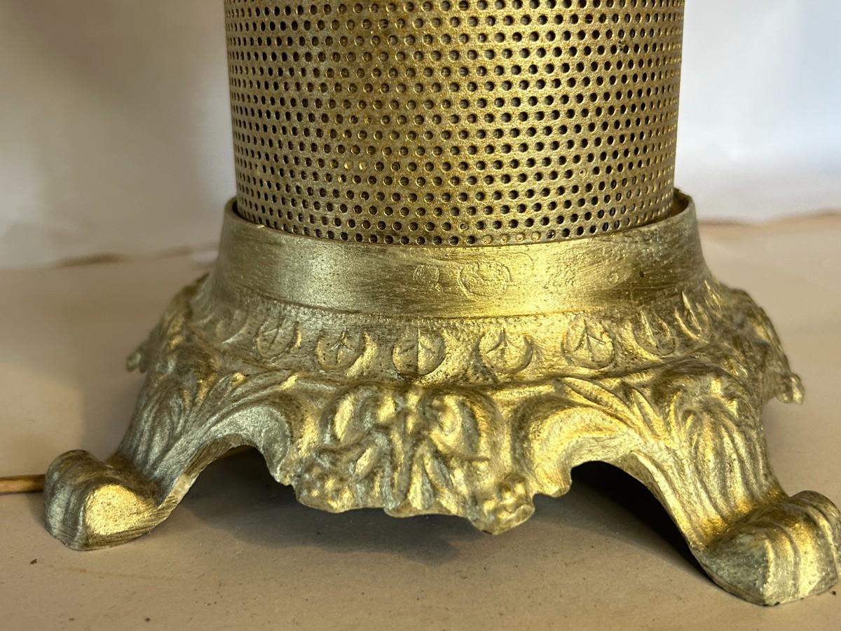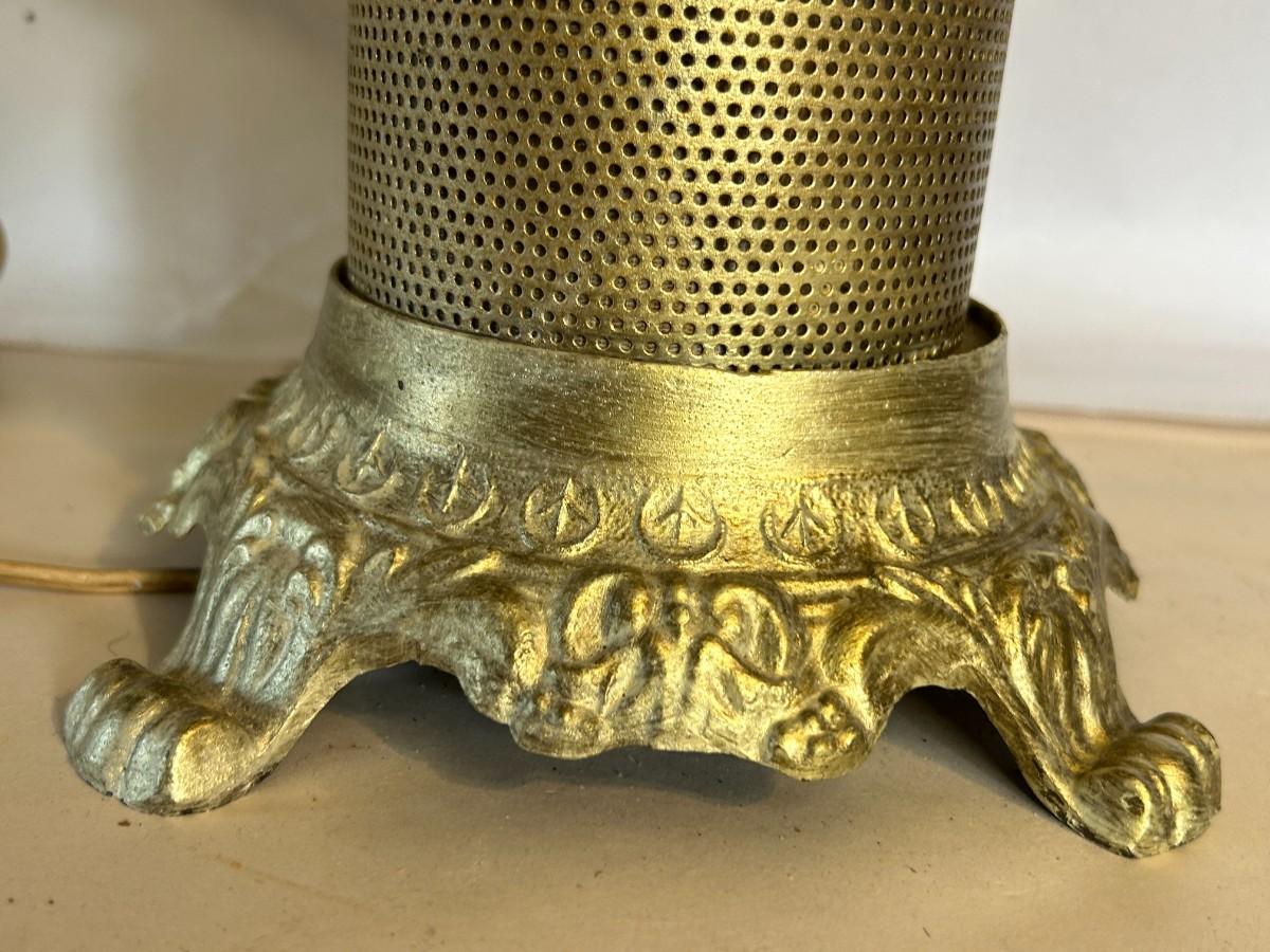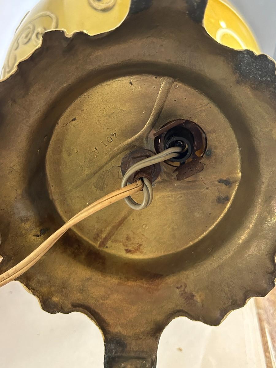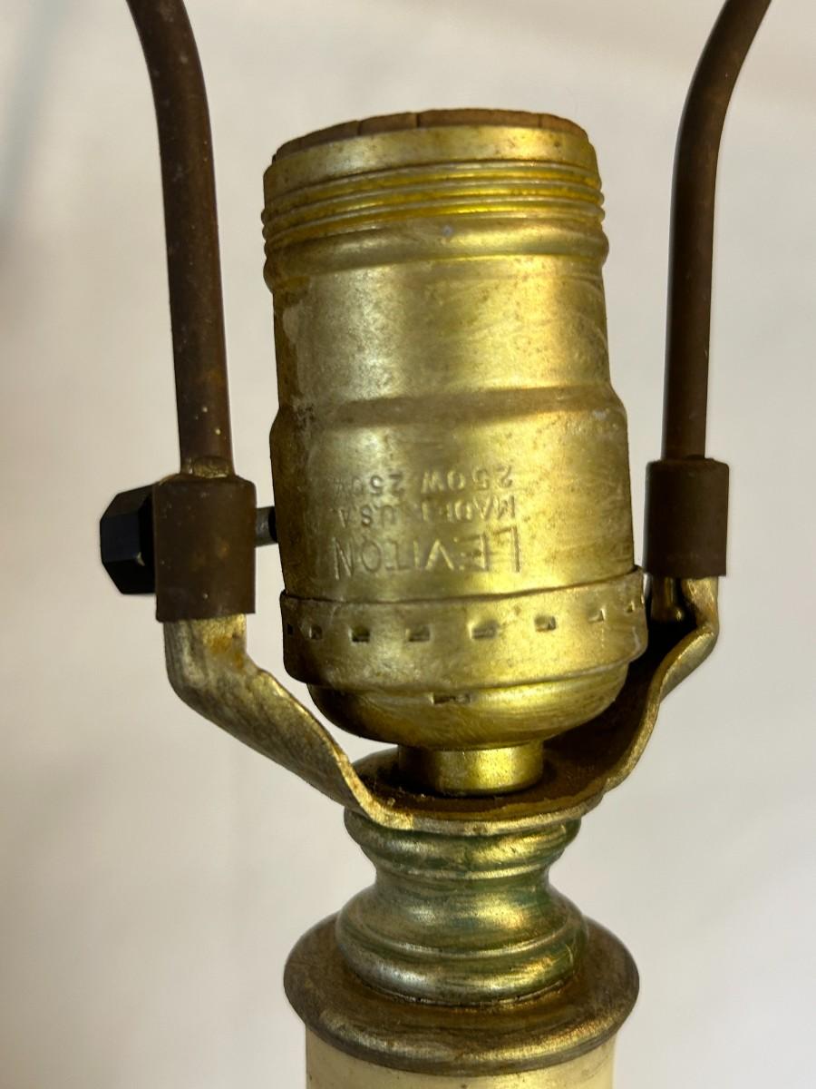 Disclosures: We tested the lamp, which is in proper working condition. This lamp will benefit from a gentle cleaning as there is a grease pencil mark on the back. We do not attempt to clean items to preserve the item's integrity. (See pictures for details.)