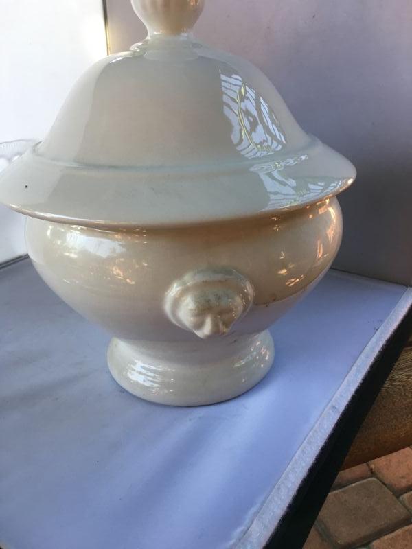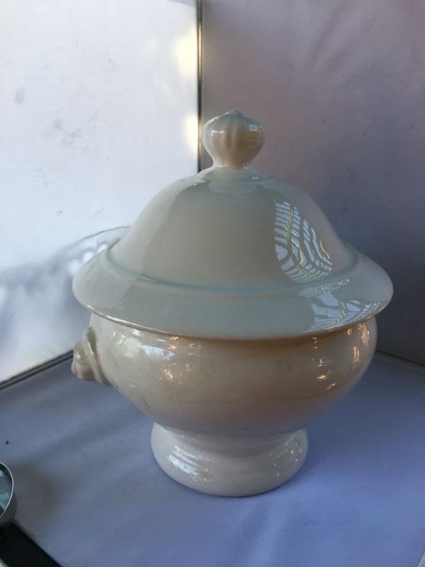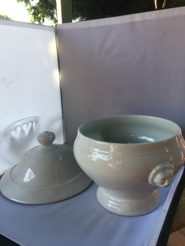 Vintage Large Lidded Bowl by Cordon Bleu BIA Porcelaine de Chine Lion Handles