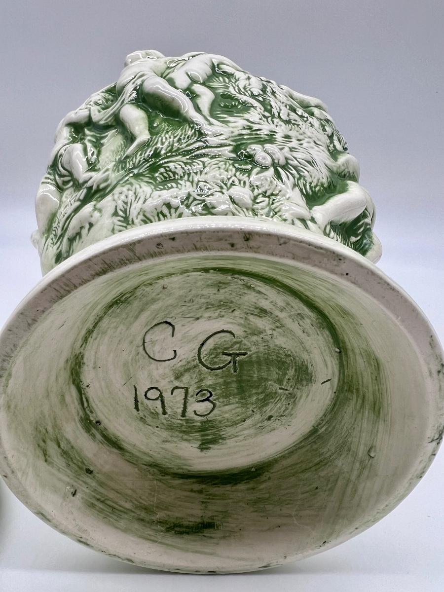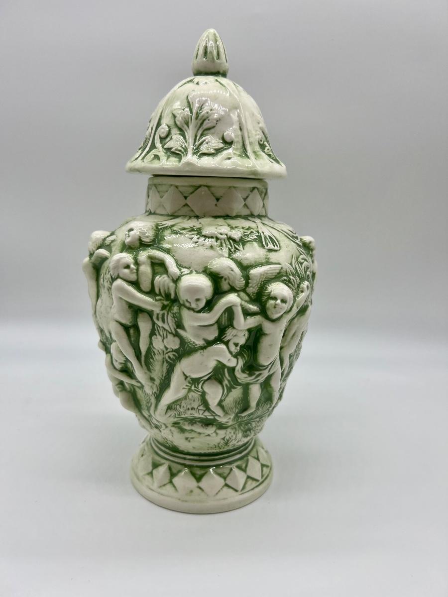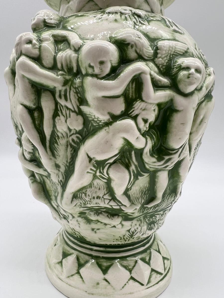 1973 Vintage Large Ornate Decorative Cherubs Angels green and off white. 13 inches tall and 7 inches wide