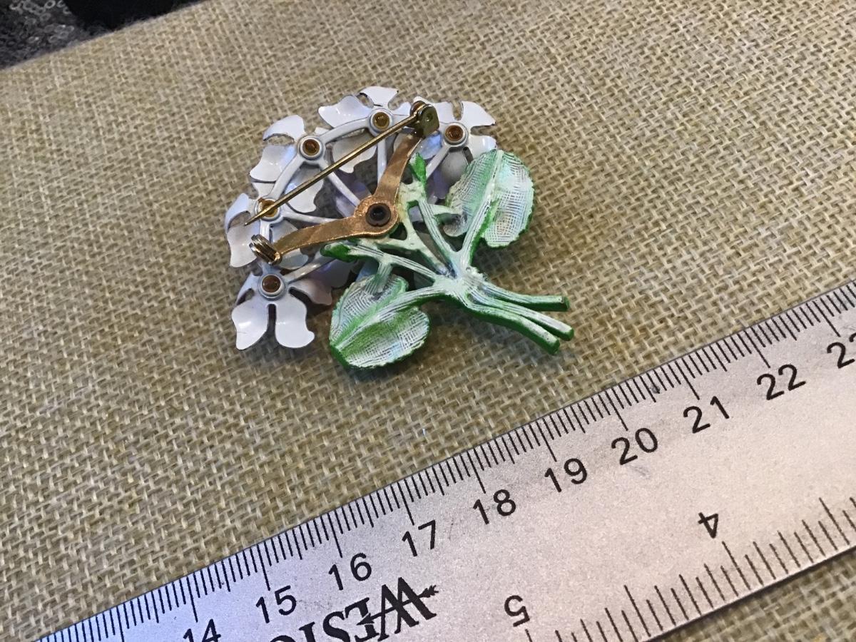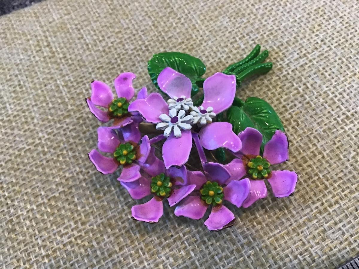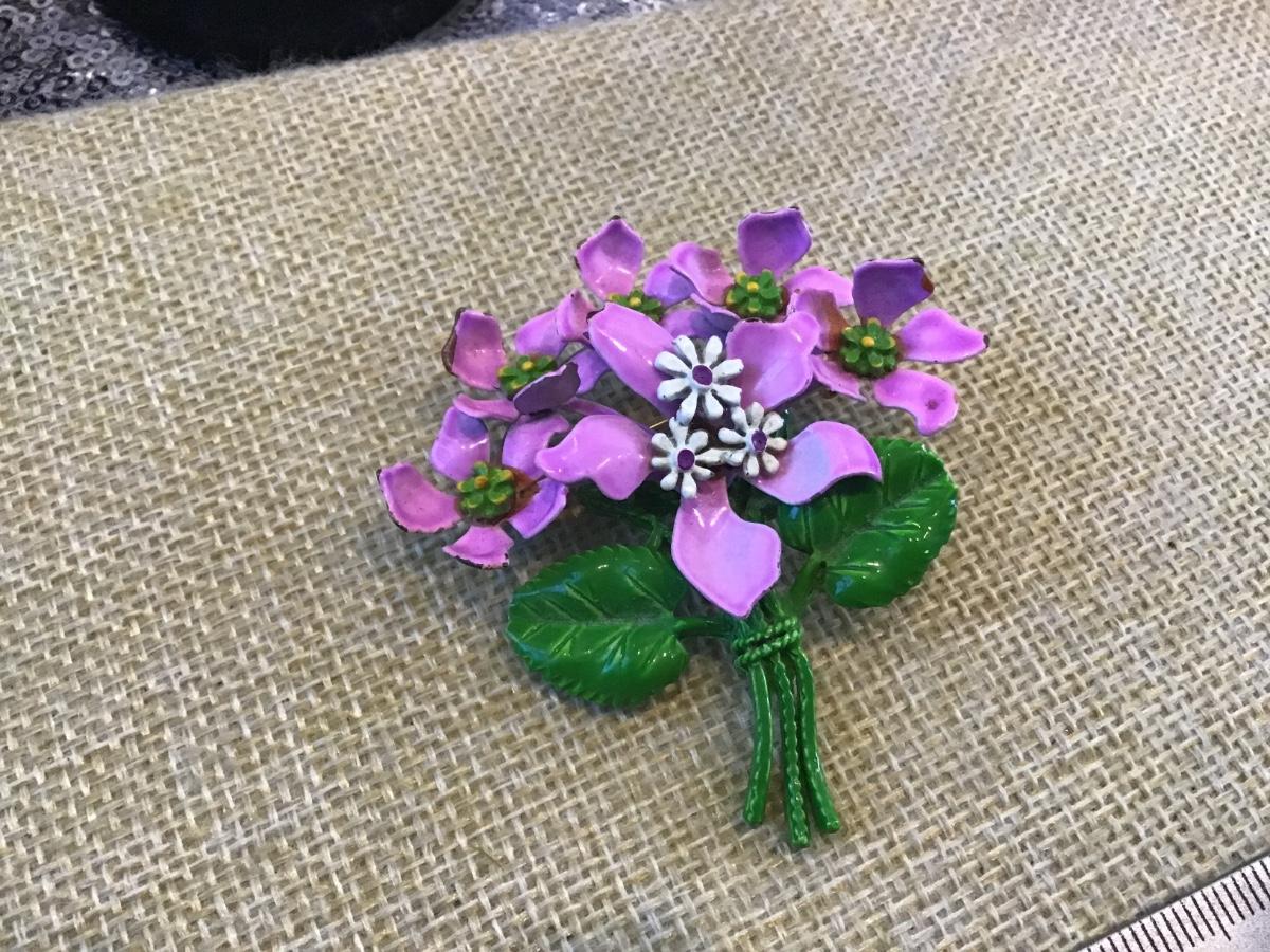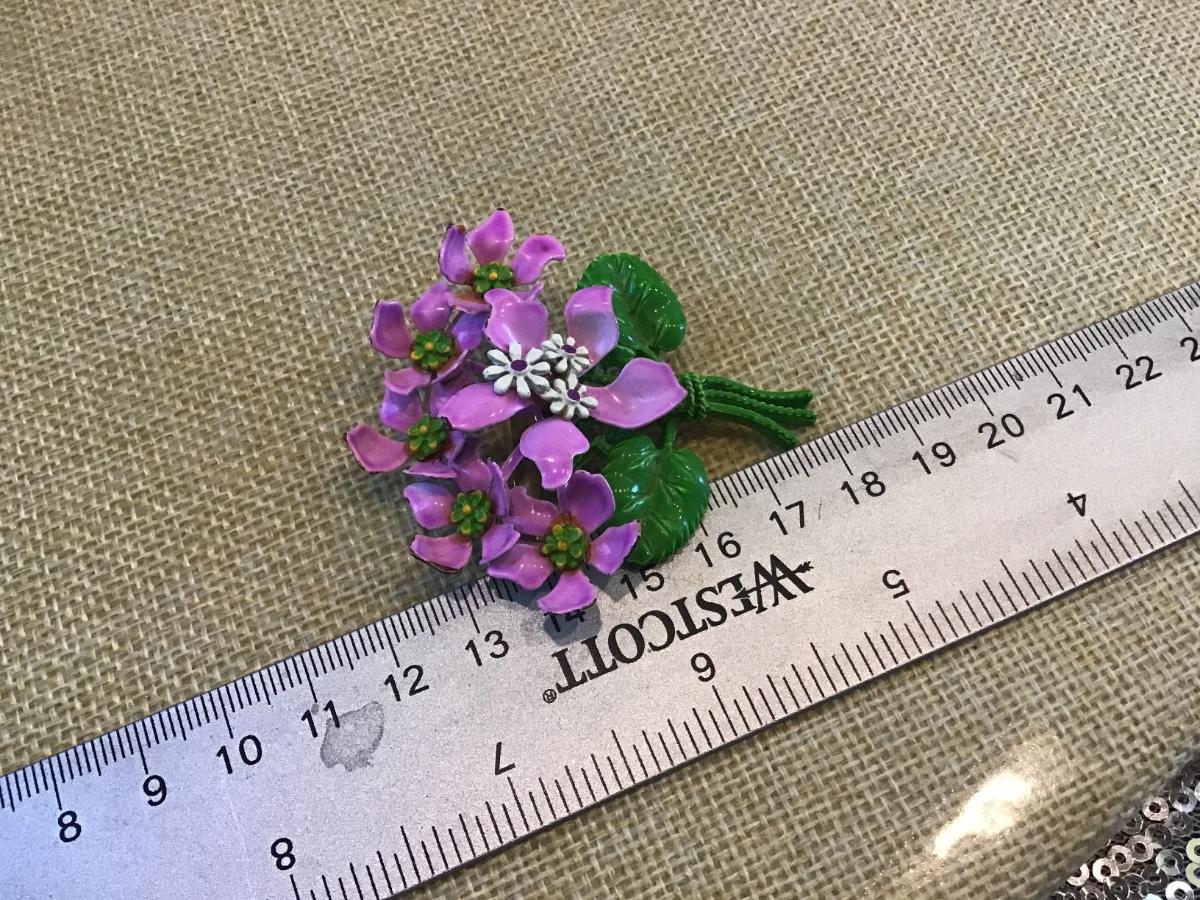 Vintage Large Pin Enamel Purple Violets Bouquet ’