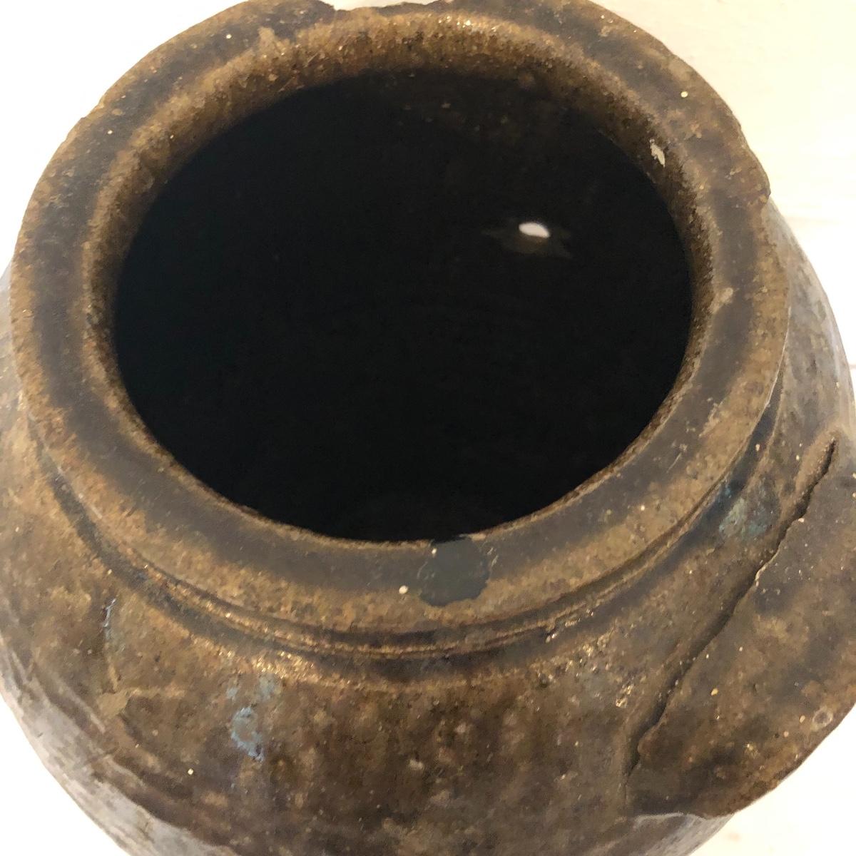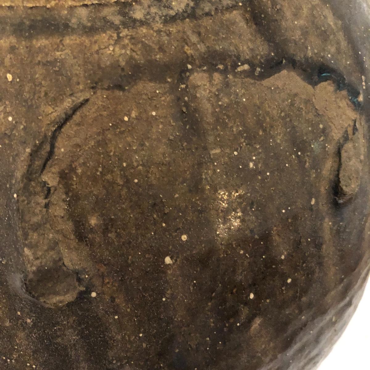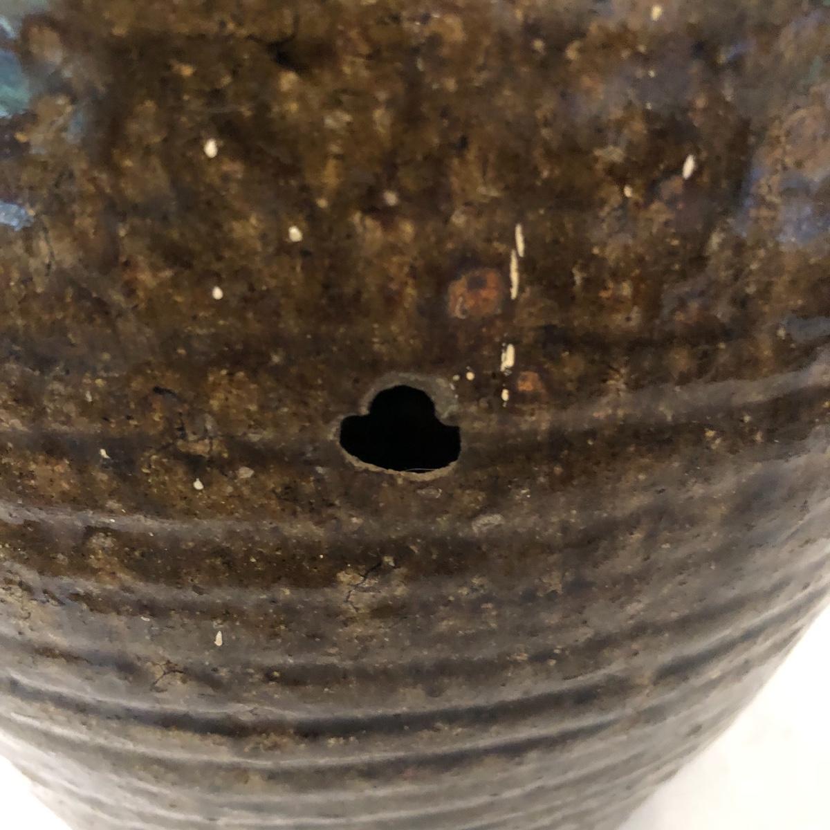 This large porch vase measures 6” diameter (Top) x 17” tall. It has some wear and tear including a small hole, see images. Also included is an NC Art Pottery book.