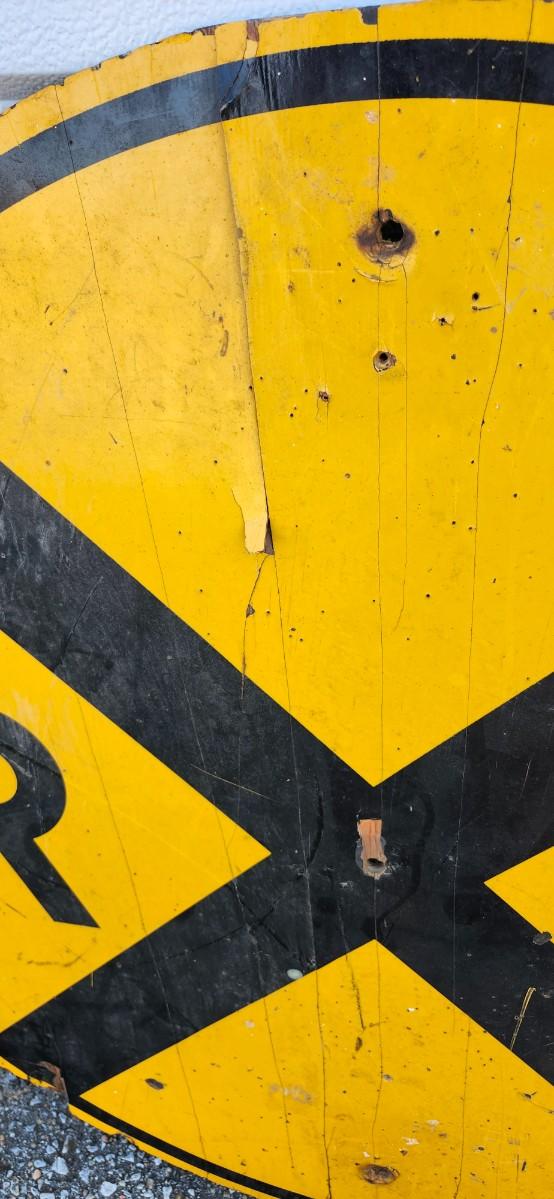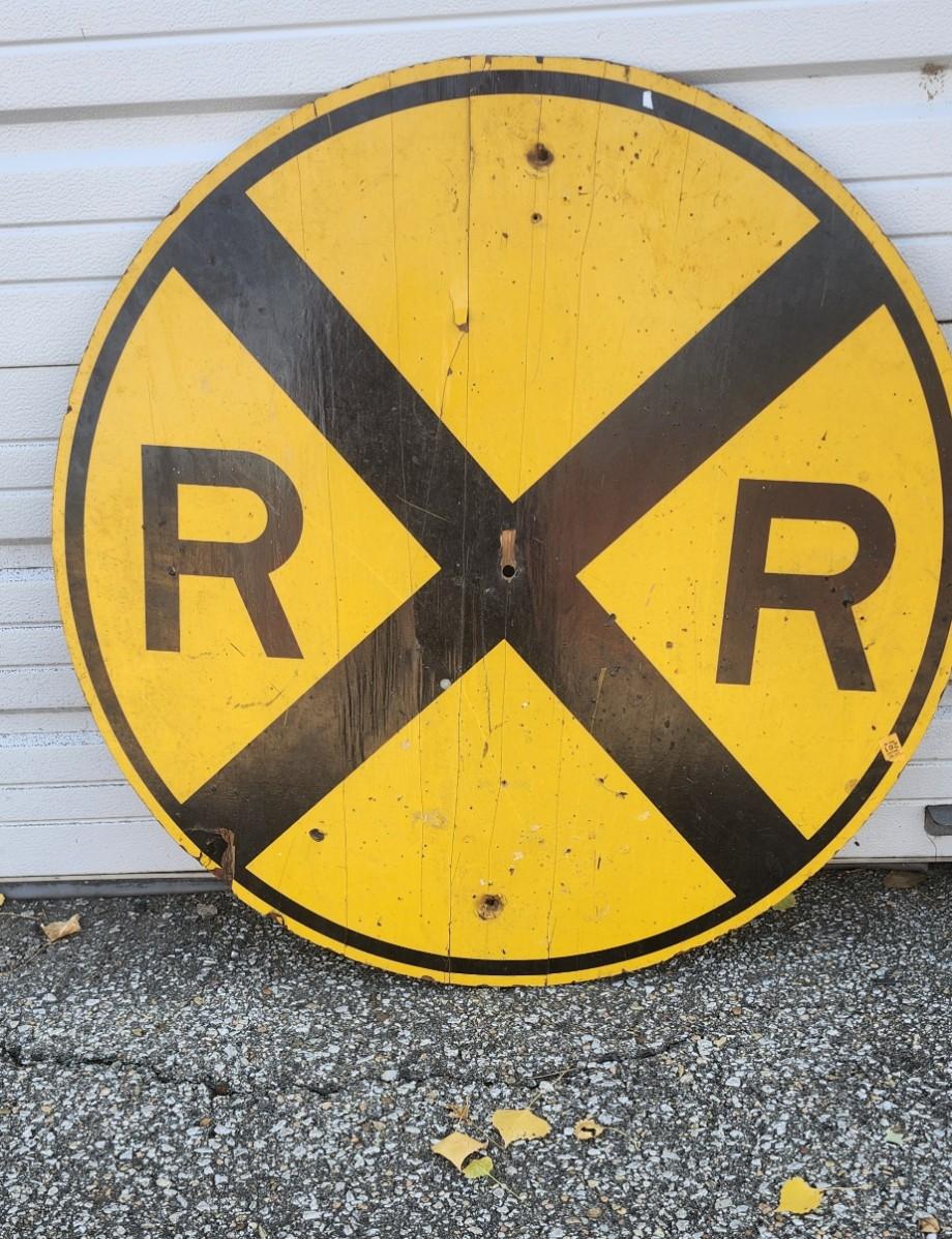VINTAGE LARGE RAILROAD CROSSING SIGN ~ 36" DIAMETER WOODEN RR CROSSING SIGN