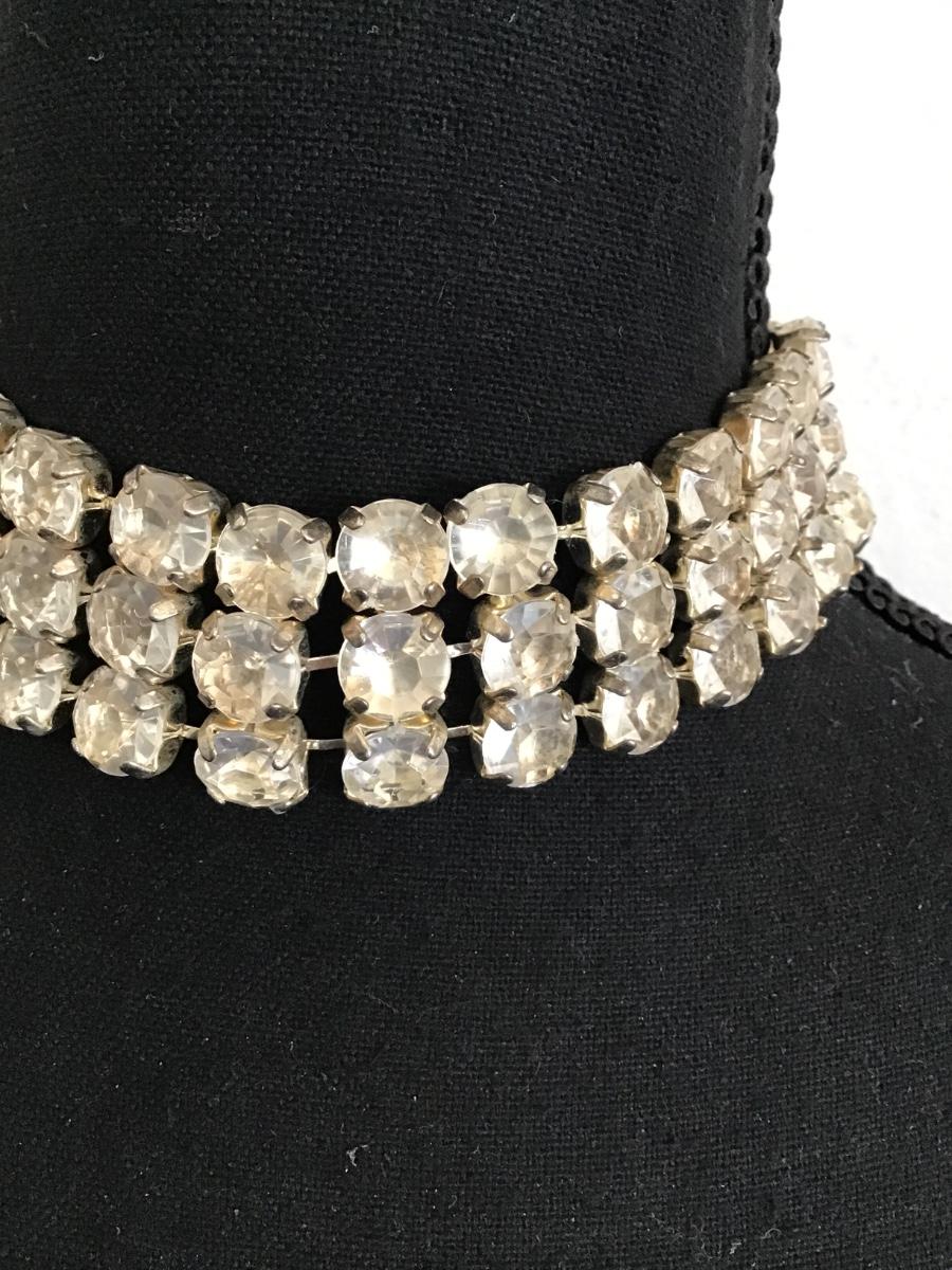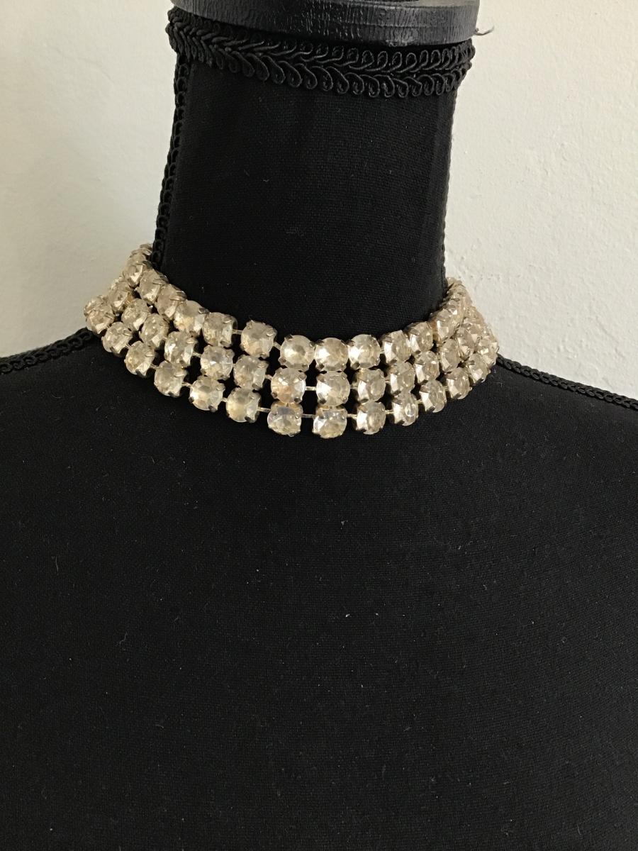 Vintage, large, rhinestone, choker, necklace, glass